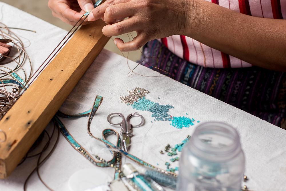 Handcrafted by master artisans in Guatemala, these collectible bracelets are designed to be worn, shared, and cherished. Bracelet purchases help support UNICEF's mission to uphold children's rights and create a more equitable world for every child. Each bracelet’s button closure and corresponding color dash represent a core UNICEF value: