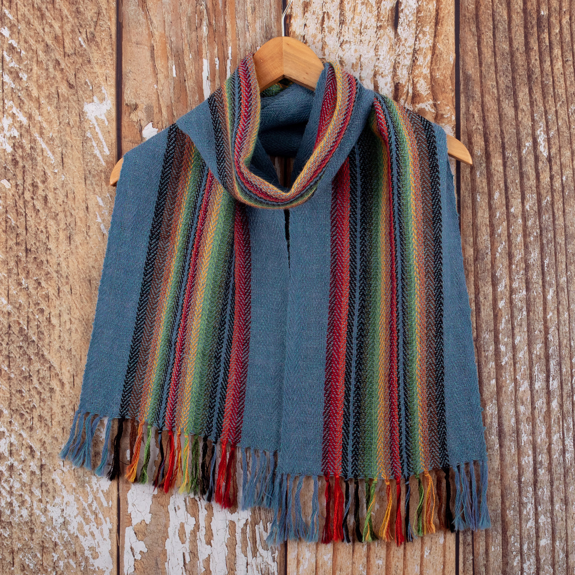 100% Alpaca Striped and Fringed Scarf Hand-Woven in Peru, 'After The Rain'