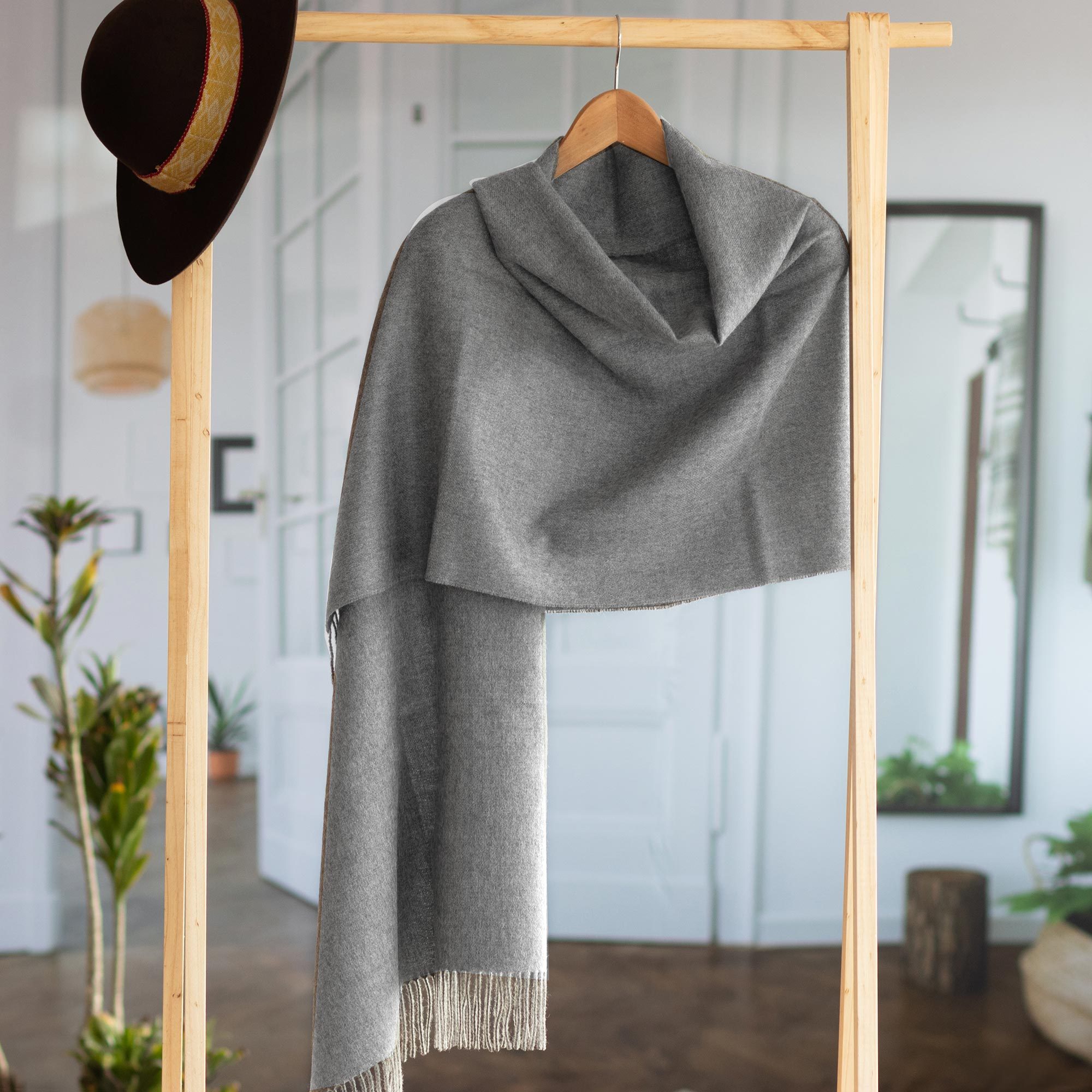 100% Baby Alpaca Shawl in Solid Smoke from Peru, 'Simple Beauty in Smoke'