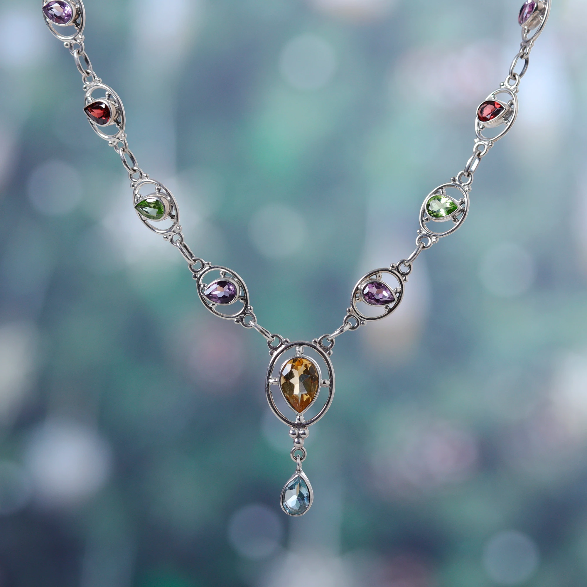 • 925 sterling silver, garnet, peridot, amethyst, citrine, blue topaz