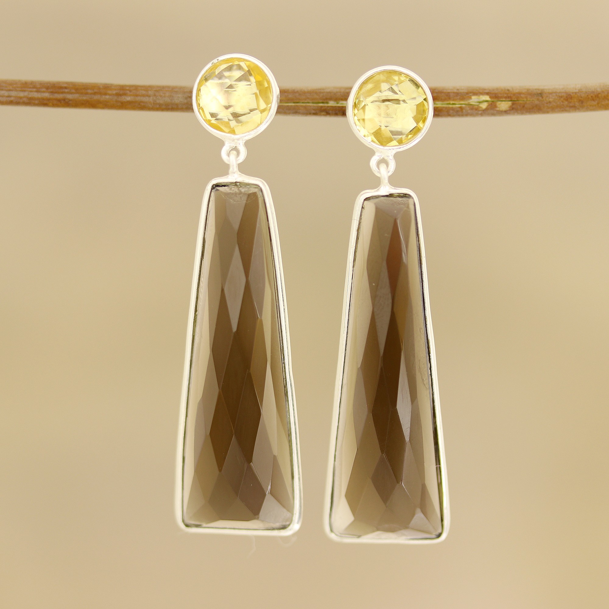 14.5-Carat Smoky Quartz and Citrine Dangle Earrings, 'Glorious Dazzle'