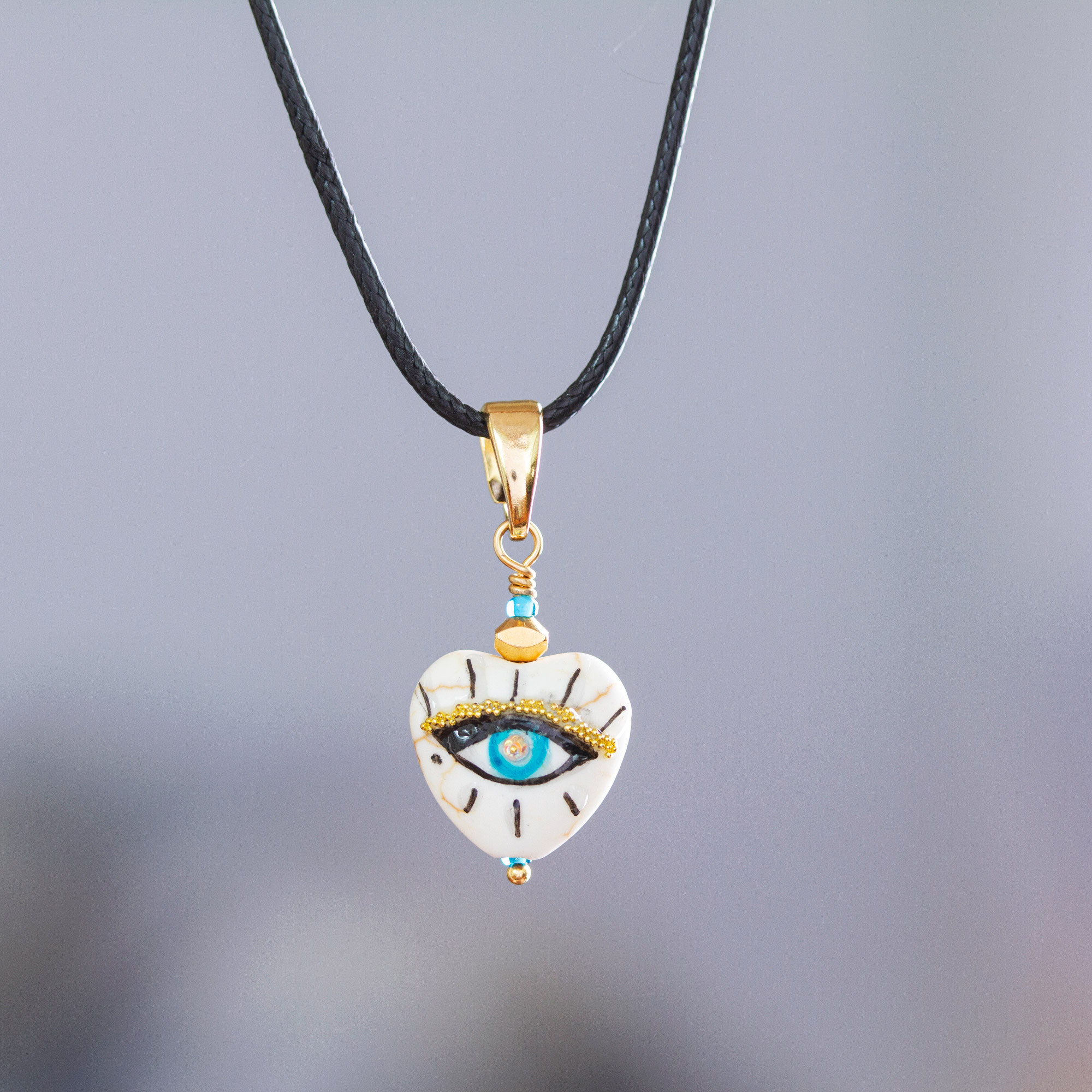 This necklace will bring a mystic touch to your outfits with its hand-painted design. Mexico's Josefina and Cecilia work with howlite to create a heart-shaped pendant, adding crystal beads and 14k gold-plated accents for a glamorous touch.