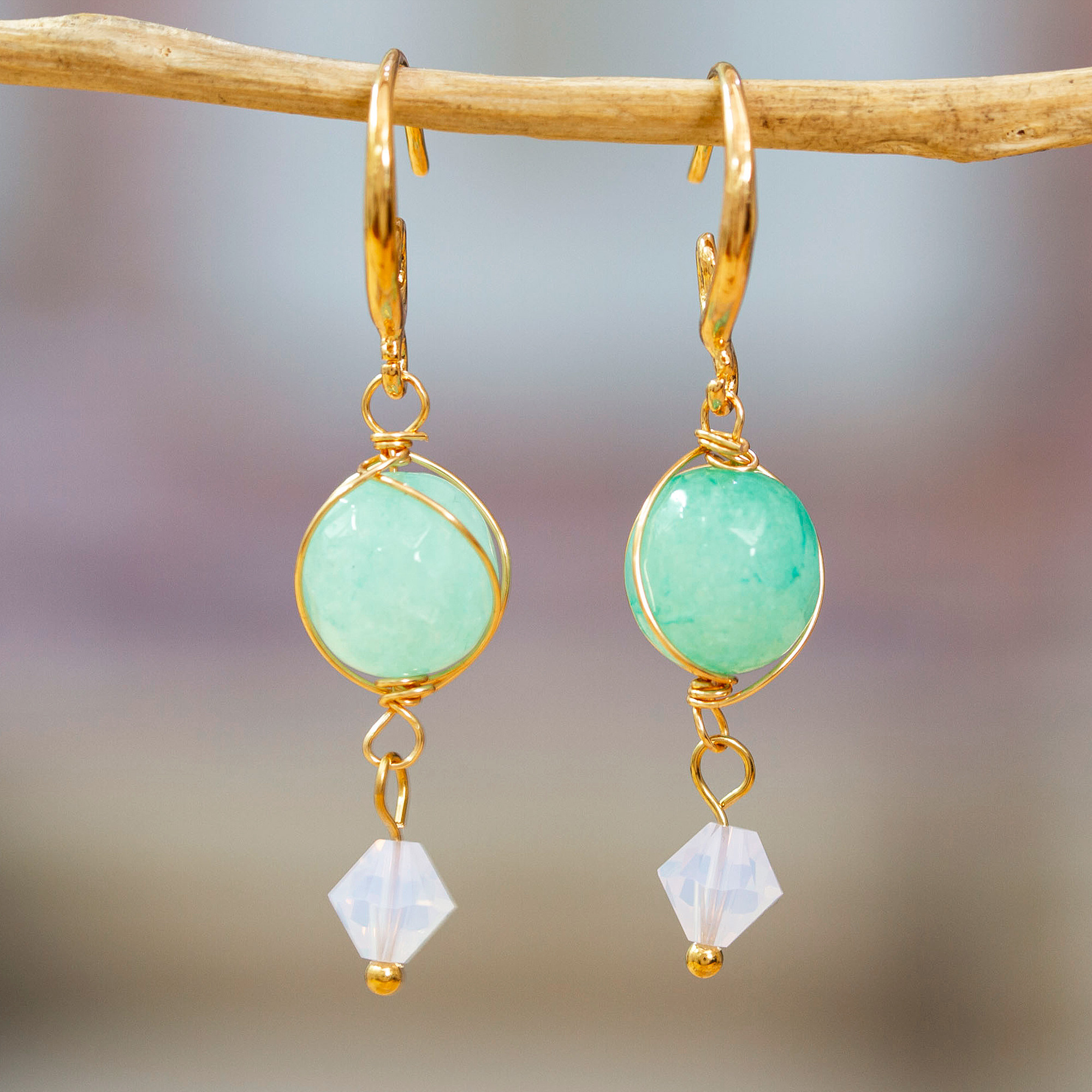 Refreshing and ethereal, these 14k gold-plated dangle earrings by Alejandra Aceves transport you to a hidden lake of celestial vibes. Directly from Mexico, the pieces display a high-polish finish that enriches the agate and Swarovski crystal gems' luminous colors.