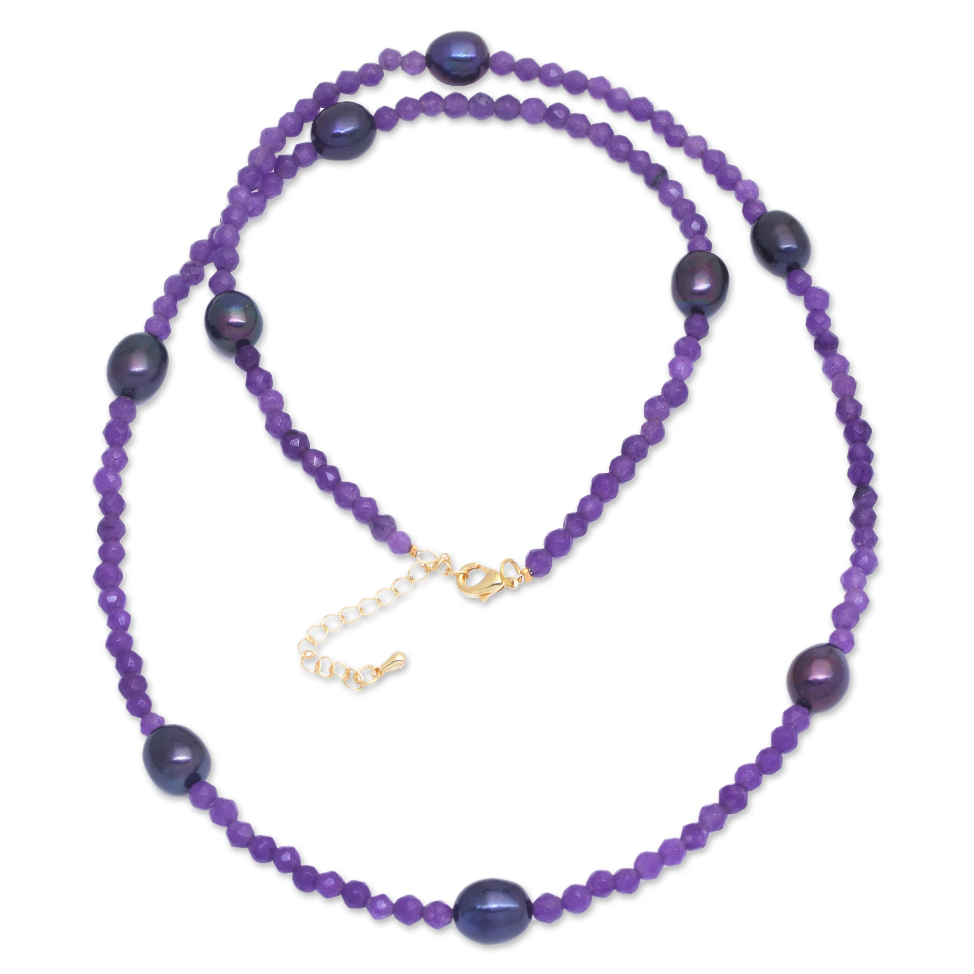 18k Gold-Accented Amethyst and Purple Pearl Beaded Necklace, 'Purple Sweets'