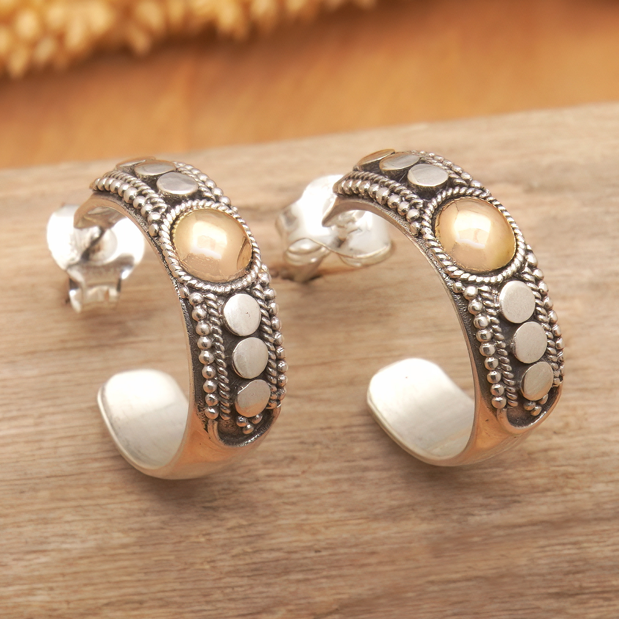 18k Gold-Accented Half-Hoop Earrings Crafted in Bali, 'Golden Thoughts'