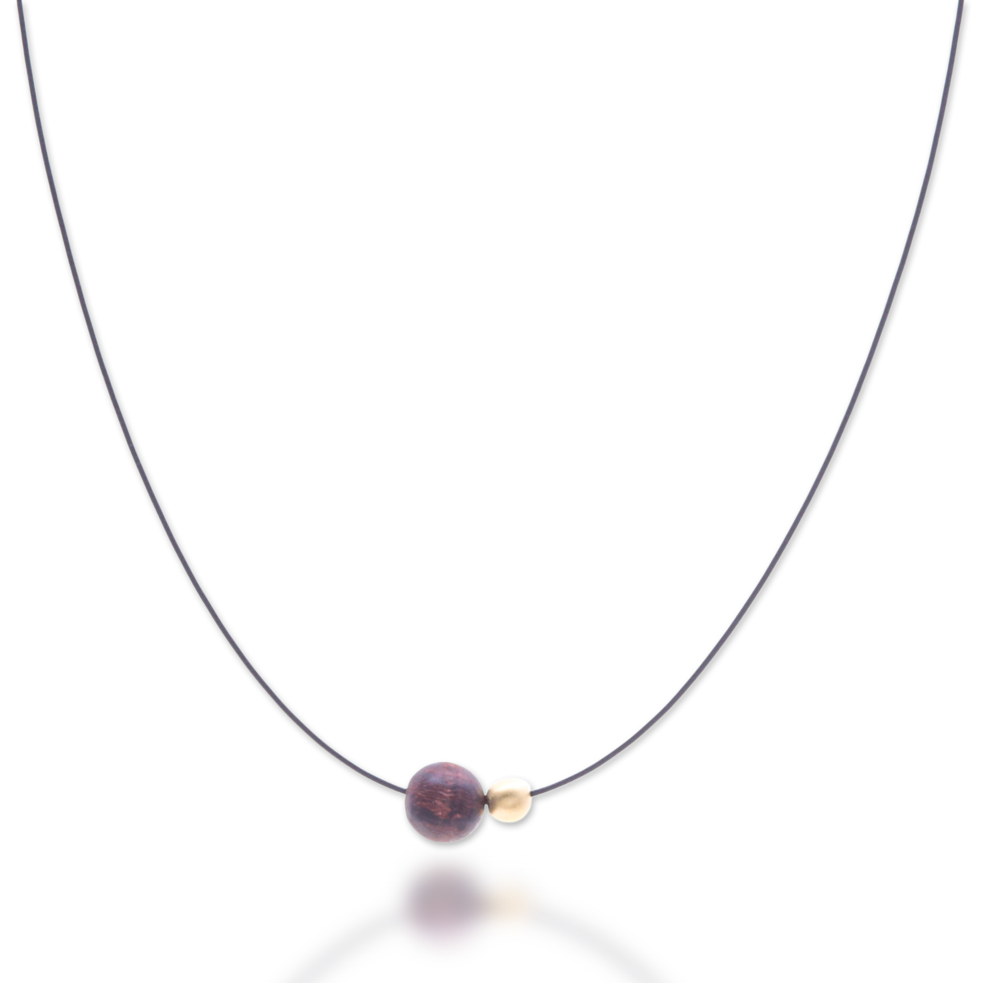• Sathon tree wood, 18k gold plating, waxed nylon cord; 925 sterling silver clasp