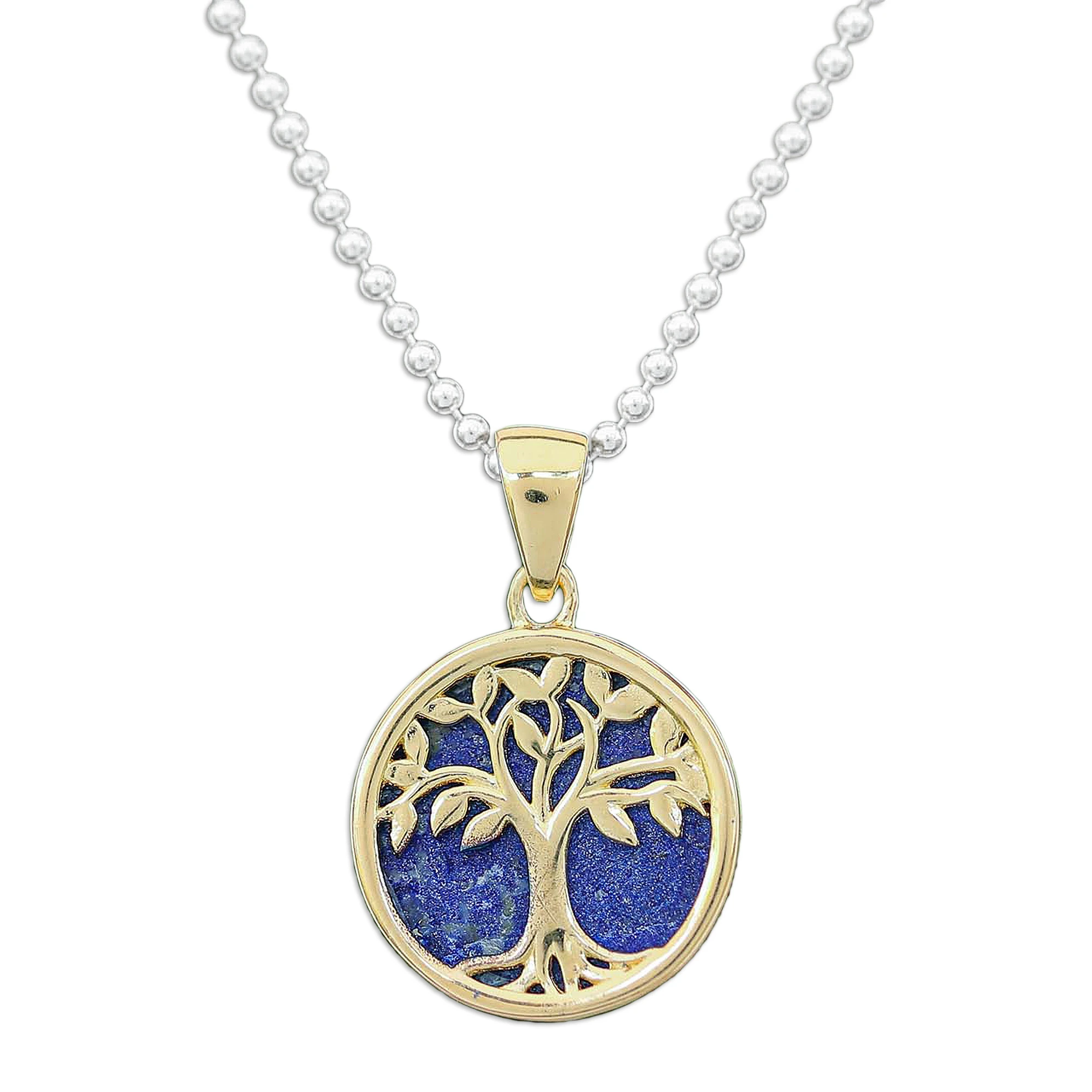 18k Gold-plated Lapis Lazuli Tree of Life Pendant Necklace, 'Glorious Haven in Lapis'