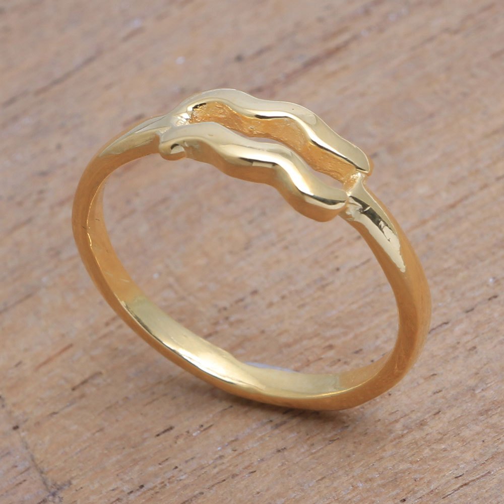 18k Gold Plated Sterling Silver Aquarius Band Ring, 'Golden Aquarius'