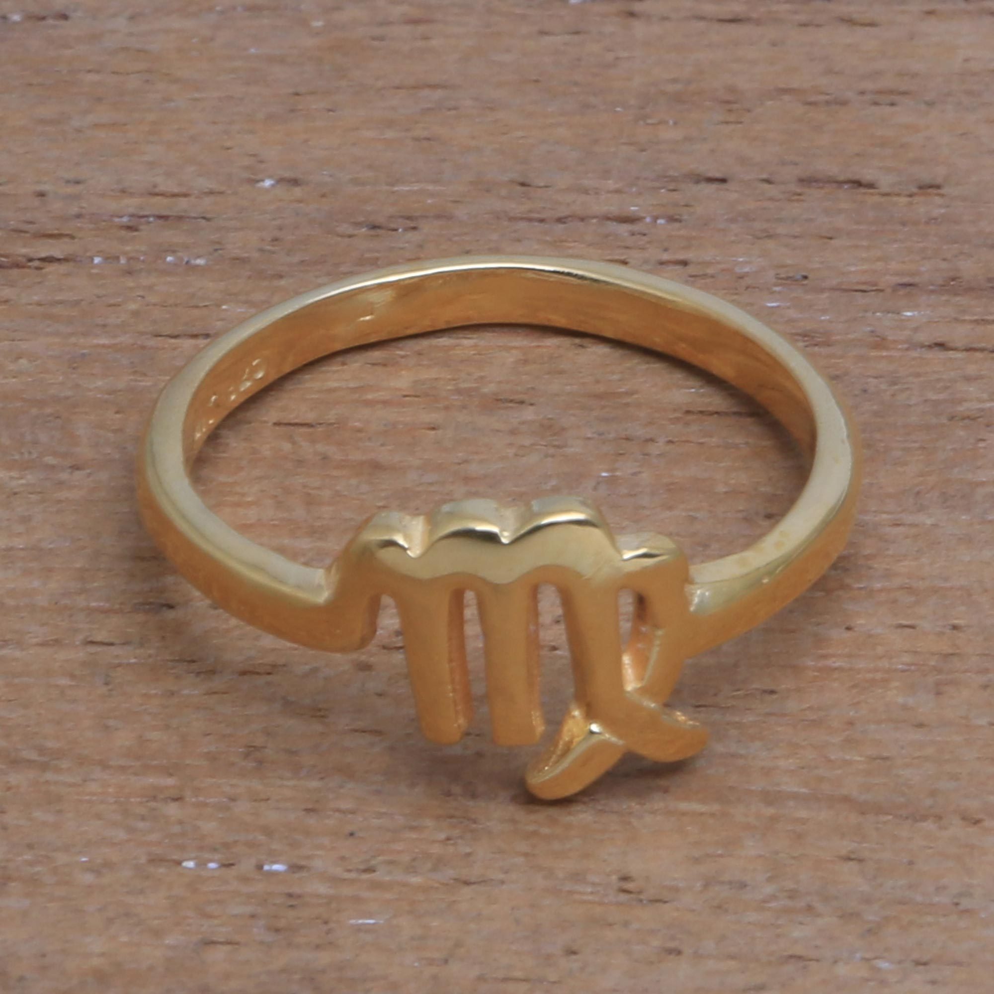18k Gold Plated Sterling Silver Virgo Band Ring, 'Golden Virgo'