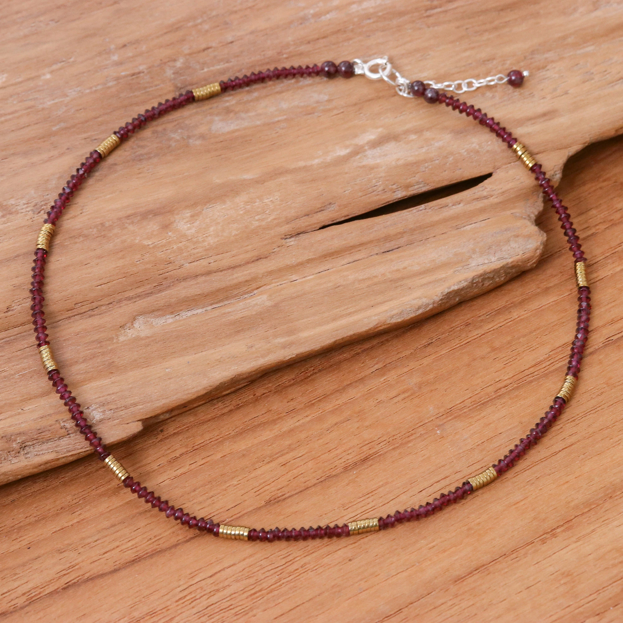 19-Carat Natural Garnet and Hematite Beaded Strand Necklace, 'Crimson Glam'