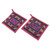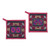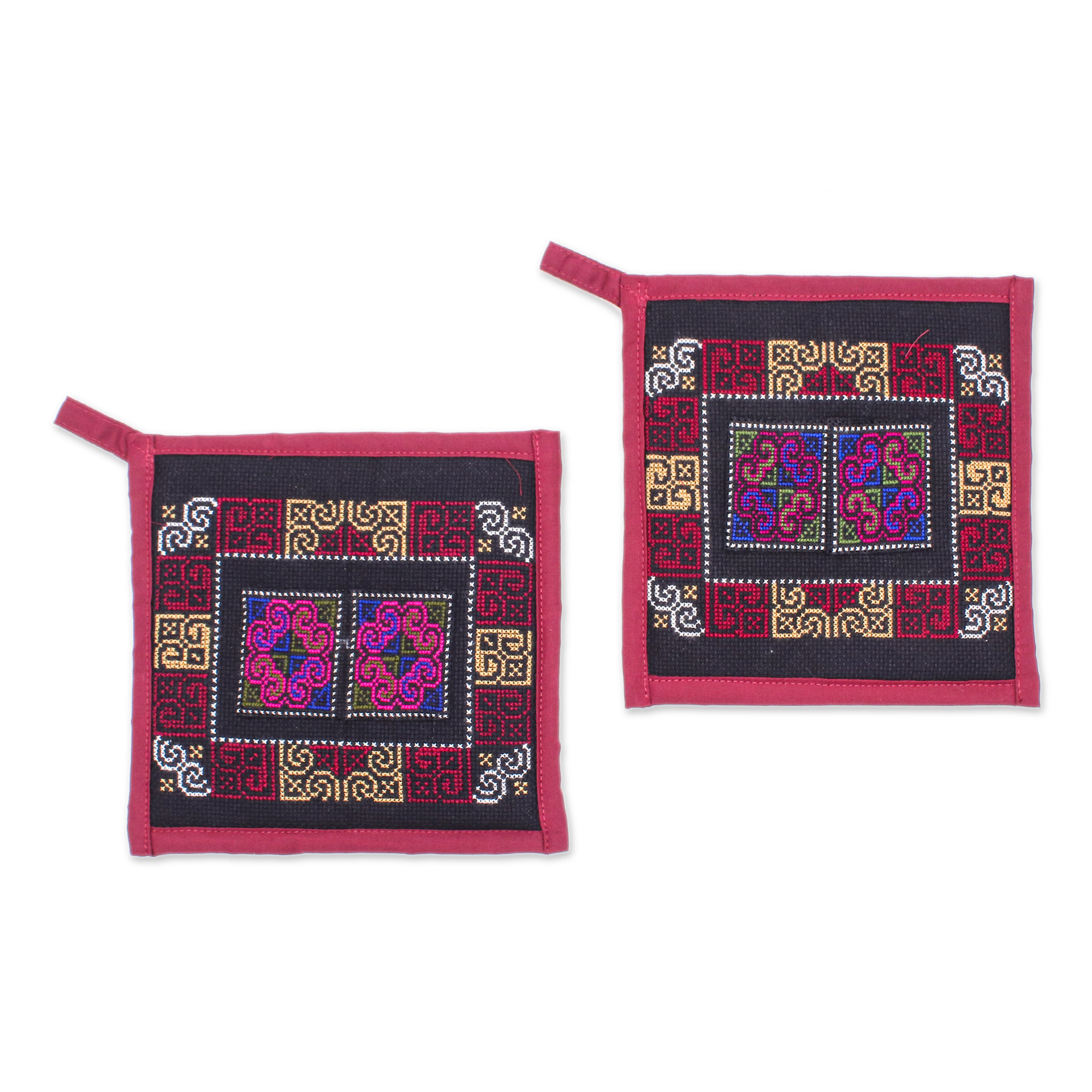 2 Burgundy Hmong Hill Tribe Embroidered Cotton Blend Trivets, 'Hmong Cooking in Burgundy'