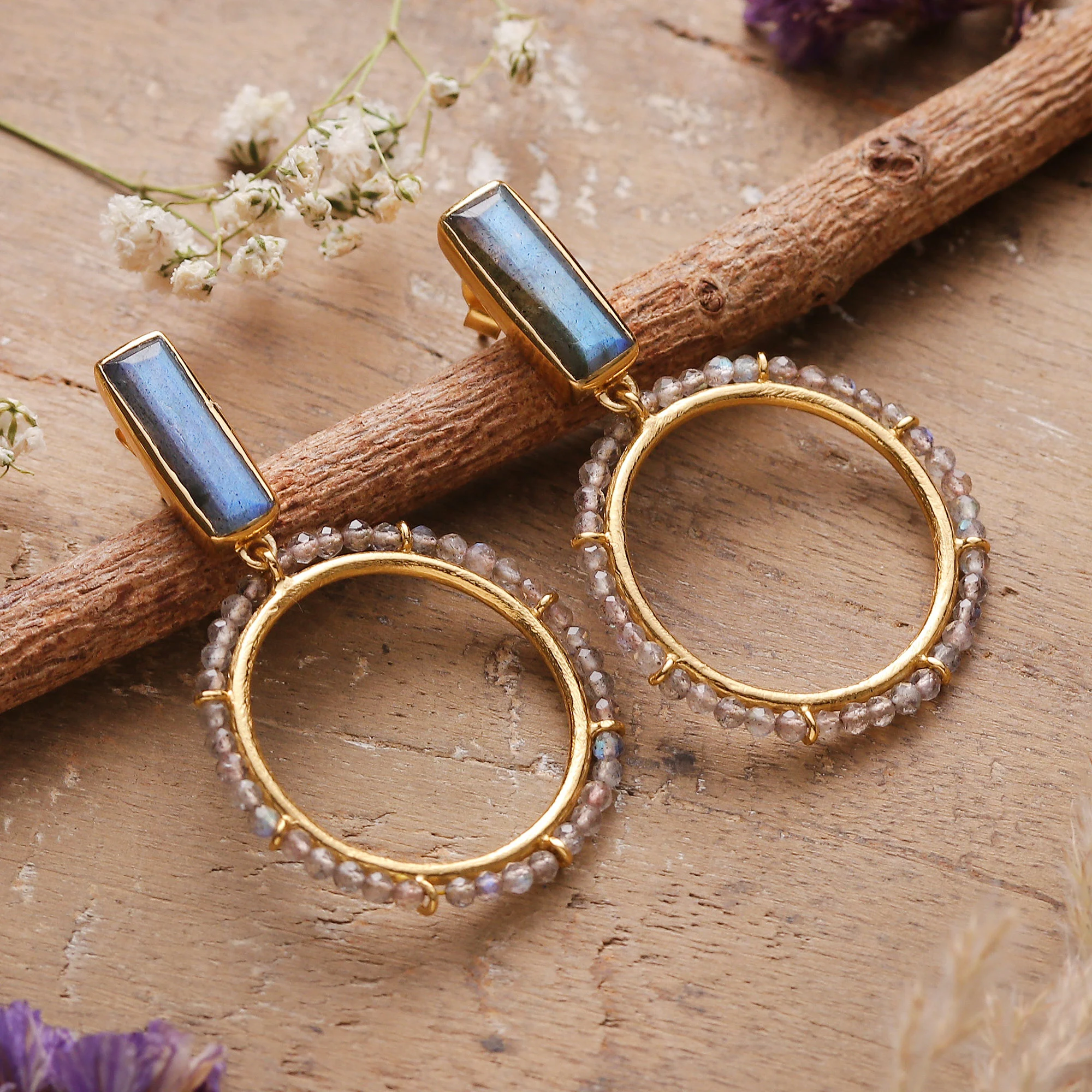 • 18k gold-plated 925 sterling silver, labradorite