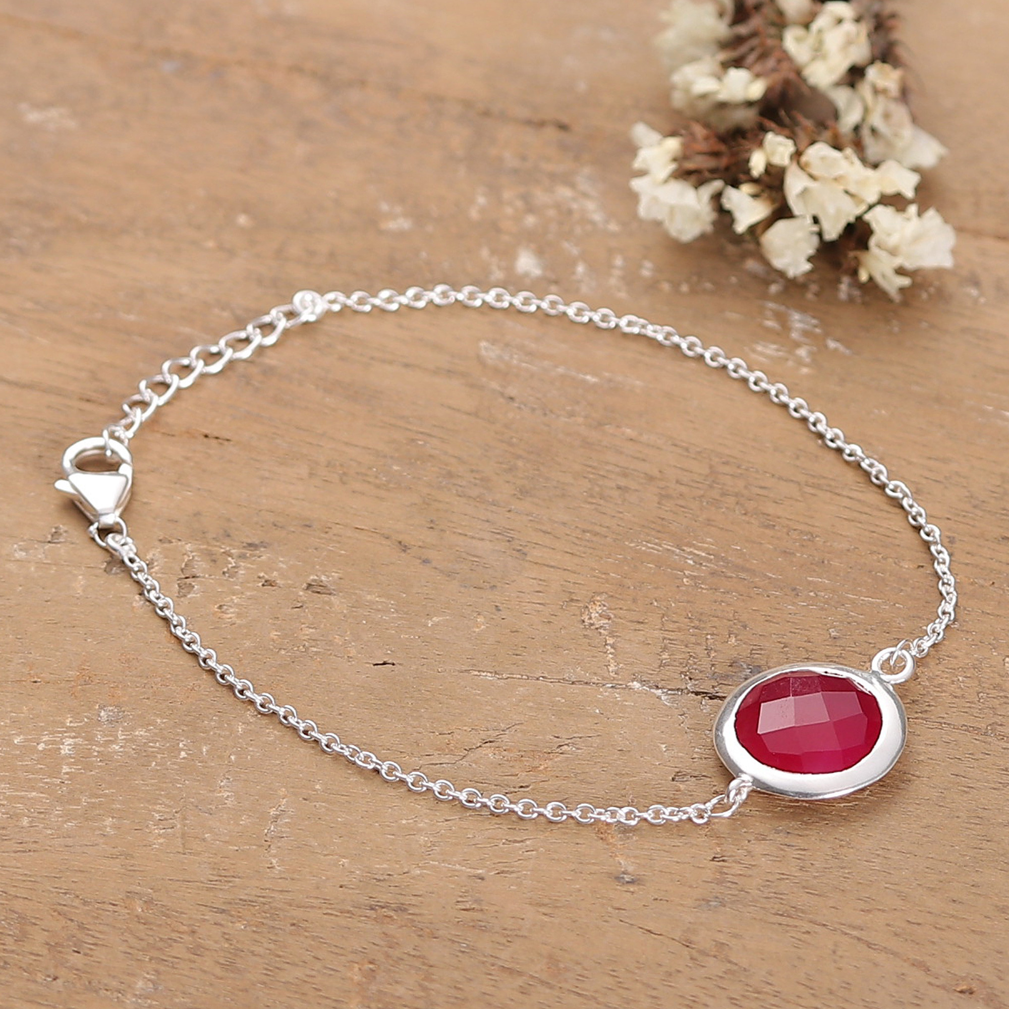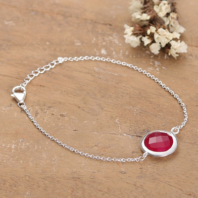 2-Carat Ruby and Sterling Silver Pendant Bracelet from India, 'Circular Caprice'
