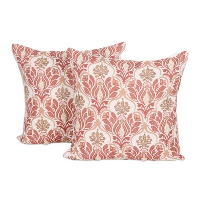 Bloom and shimmer transform your seating with this enchanting pair of cotton cushion covers that bring botanical beauty to life through printed florals and leaves adorned with tufted and golden Lurex thread embroidery. The shimmering front designs create a stunning contrast against solid-colored backs, while full linings and practical zippered closures make it easy to slip cushions in and out. Presented by India's Seema, these glamorous covers add a touch of opulent texture and radiant metallic detail that turn ordinary pillows into luxurious accent pieces worthy of your favorite chair or sofa.