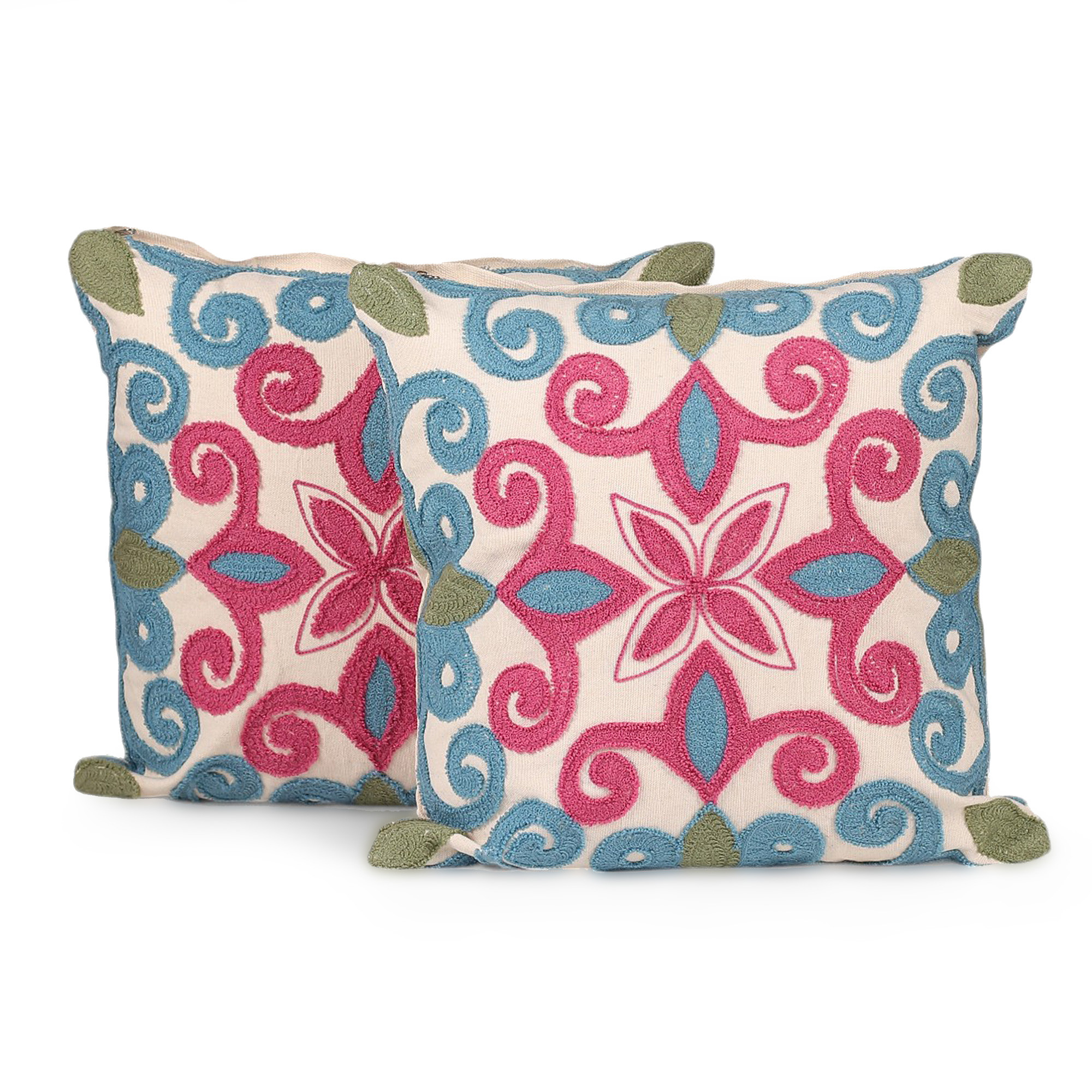 Your sofa will never be the same thanks to these vibrant cotton cushion covers boasting mesmerizing floral and swirl-themed aari embroidery. Indian designer Tapan Sarbadhikary creates colorful decorative accents that feel both luxuriously soft and visually striking. The practical zippered closure means you can refresh your space in seconds, swapping out old cushions for these artistic treasures that bring instant sophistication to your home.