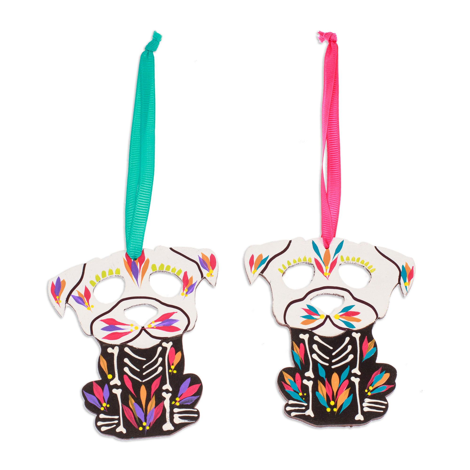 2 Hand-Painted Wood Day of the Dead Skeleton Dog Ornaments, 'Day of the Dead Dog'
