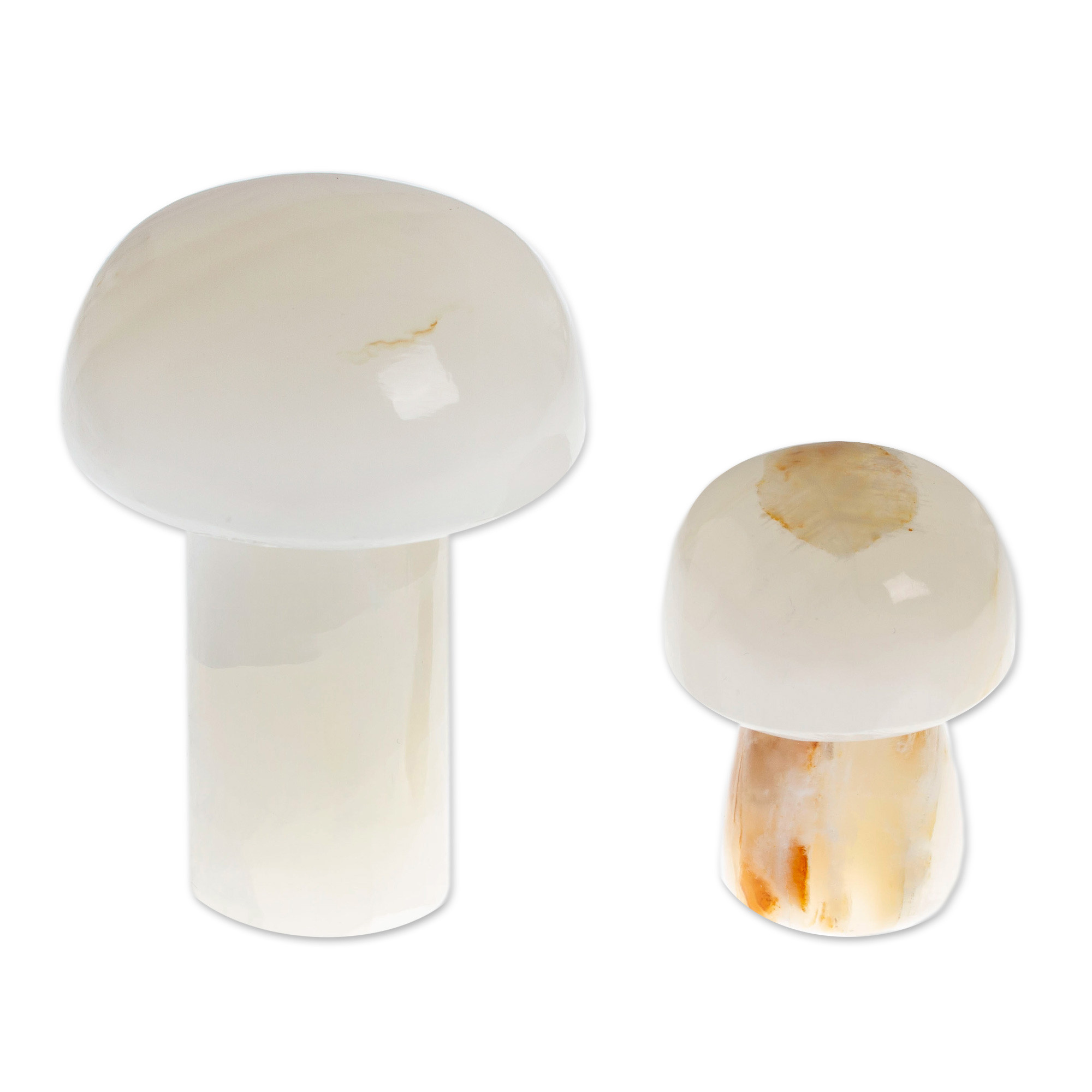 2 Mushroom-Shaped White Onyx Home Accents Handmade in Mexico, 'Marvelous Mushrooms'