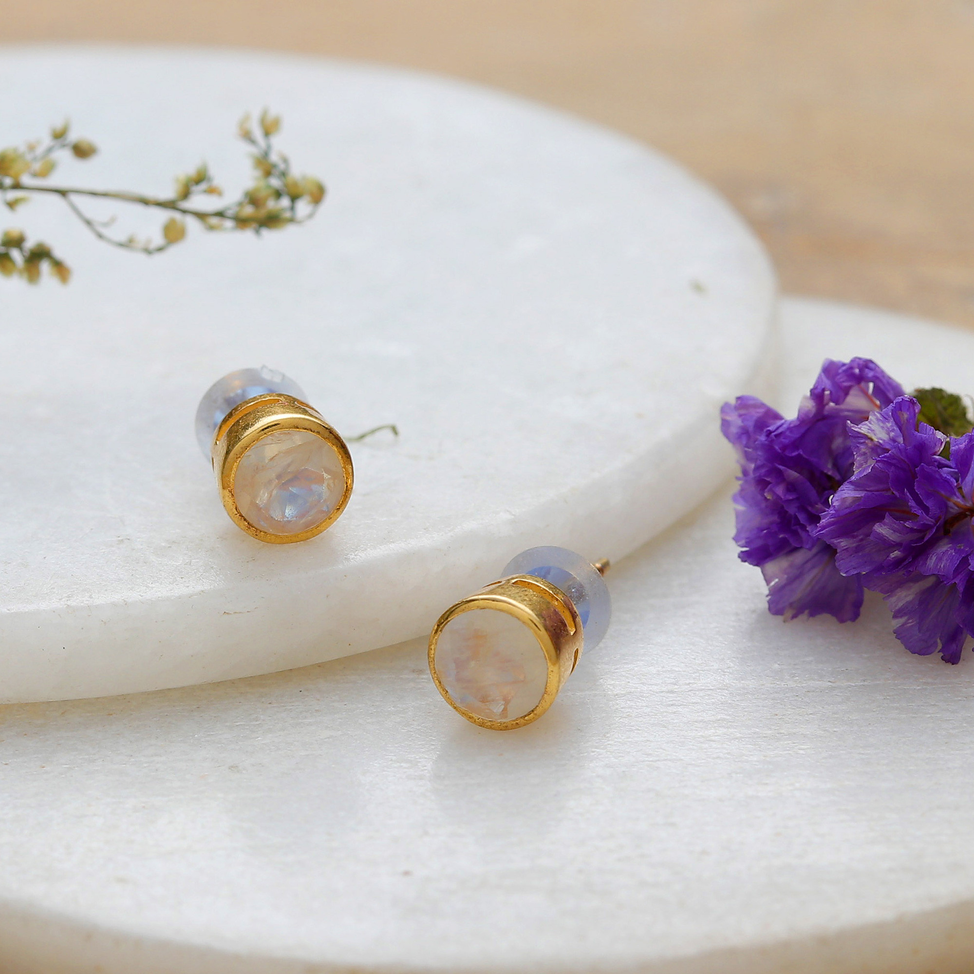 • 22k gold-plated 925 sterling silver, rainbow moonstone