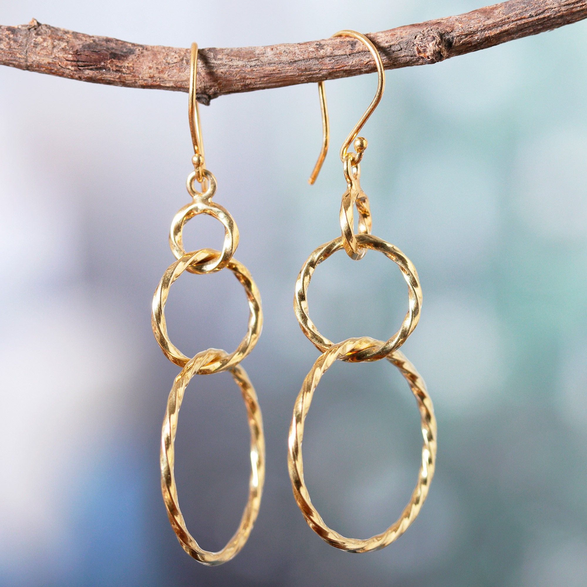 22k Gold-Plated Sterling Silver Loop Dangle Earrings, 'Golden Loop'