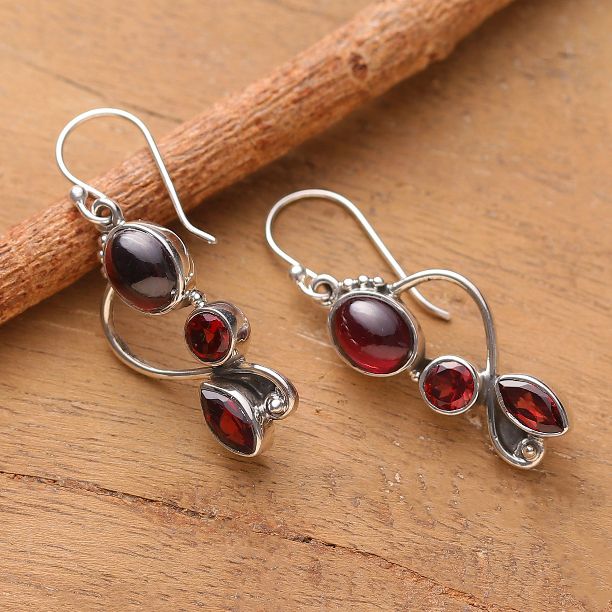 3-Carat Natural Garnet and Sterling Silver Dangle Earrings, 'Passionate Alliance'