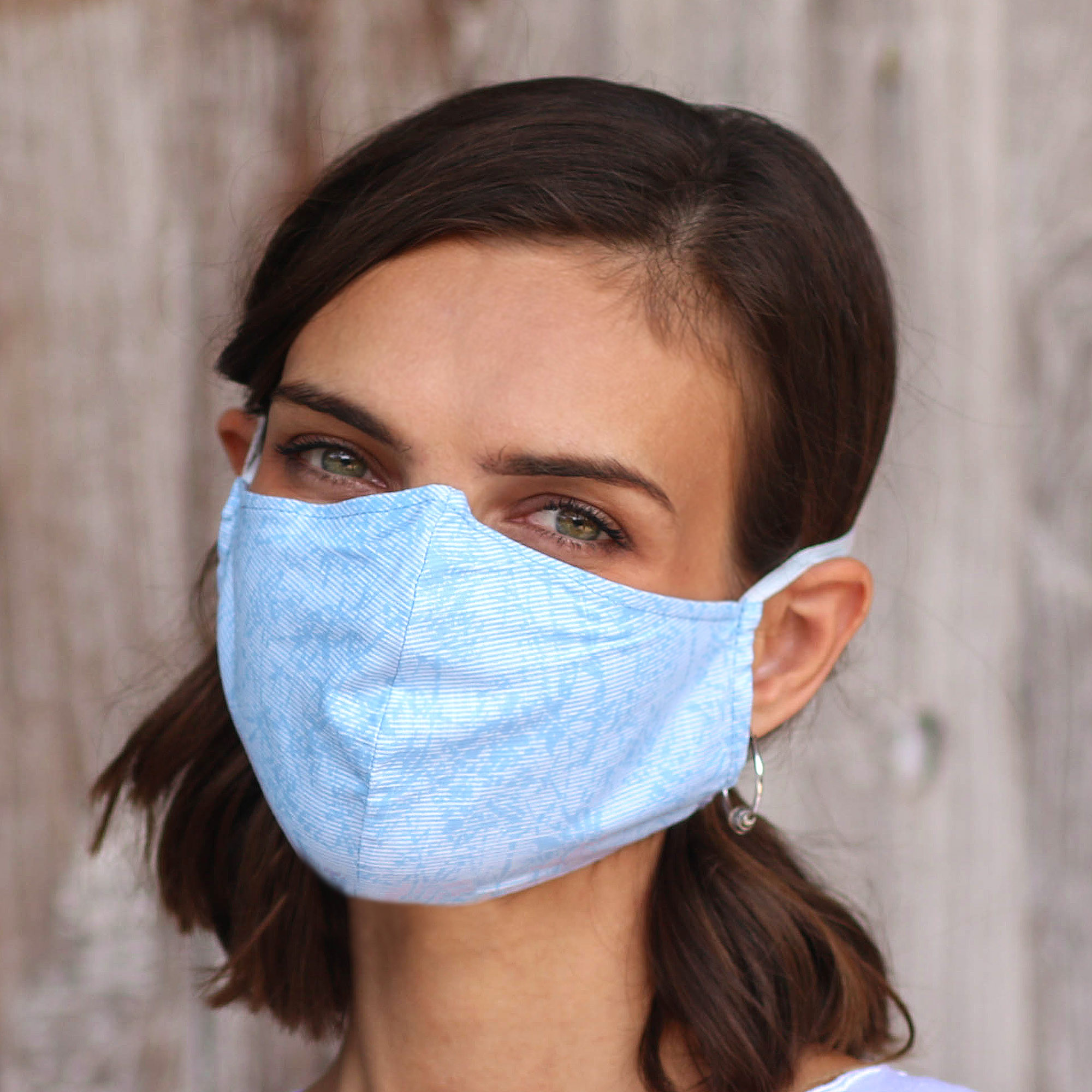 Three different shades of blue evoke the many moods of the sky. Crafted by Ully, each features crisscross elastic to stretch around the head for all-day wear. All three are double-layered and are both washable and reusable, with an opening so you may insert a protective layer of tissue or paper towels.