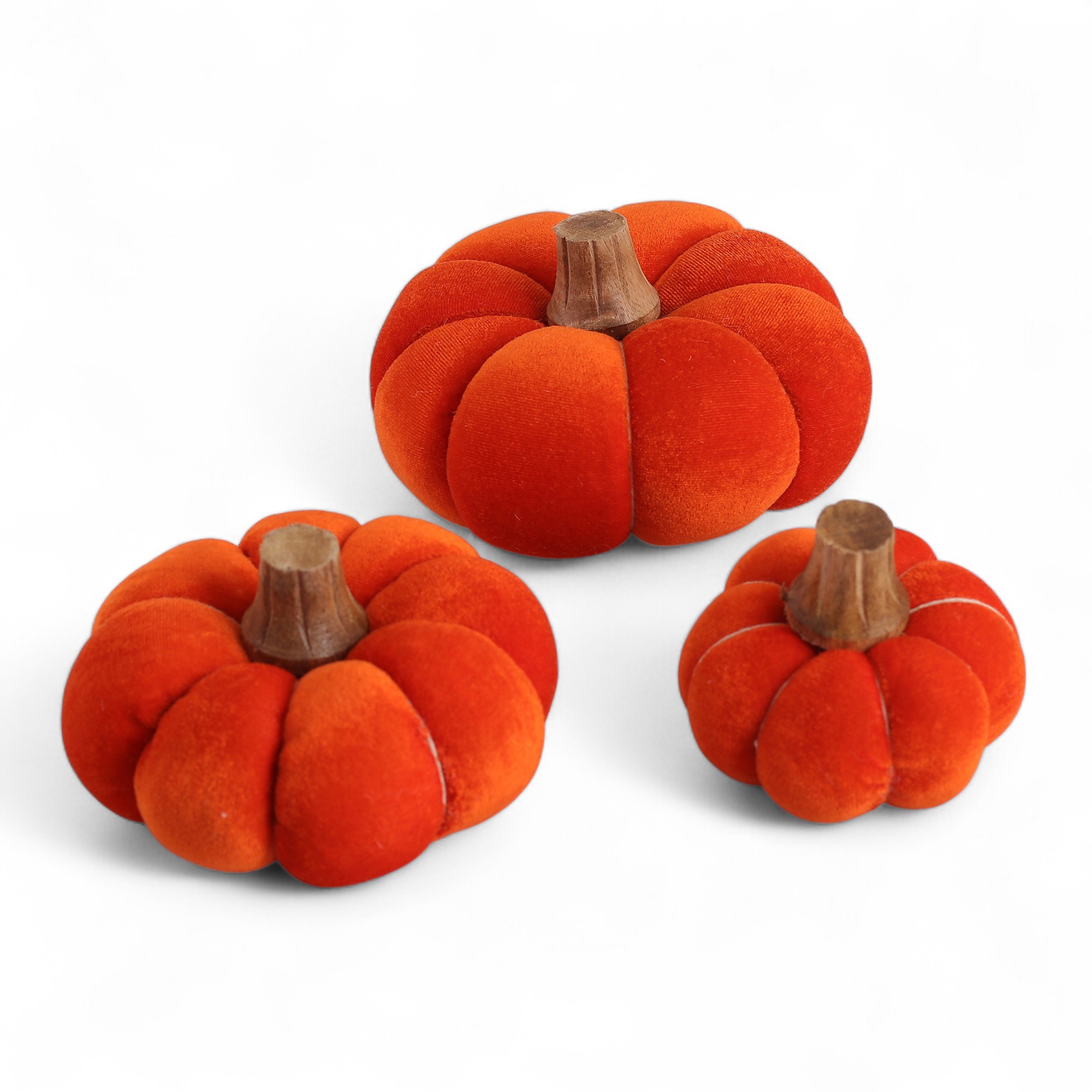 3 Velvet and Wood Halloween Pumpkin Decorative Accents, 'Pumpkin Dreams'