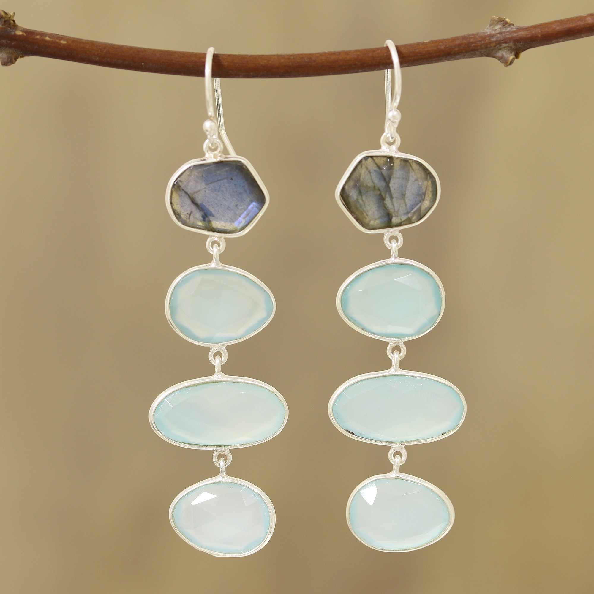 38-Carat Blue Chalcedony and Labradorite Dangle Earrings, 'Fantastic Mist'