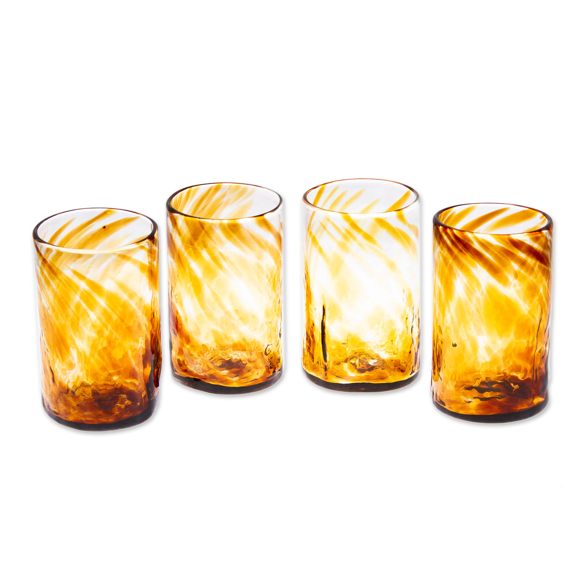 Guided by the wonders of nature, Salime Cruces creates stunning hand-blown glass designs that mirror its awe-inspiring textures, colors and shapes. Dedicated to environmental conservation, she incorporates recycled glass and sustainable energy sources, such as solar panels and recycled cooking oil for kiln firing. The Mexican artisan showcases a set of four lovely tumblers, each hand-blown from recycled glass and infused with captivating brown pigments, promising to elevate your next dinner party experience.
