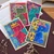 Greet those loved ones with a series of adorable trunks, hidden behind a stunning Thai design by Nisa. Pink, purple, light blue, and green hues transport a little elephant to a series of artworks inspired by the region's palaces, all made with batik techniques on cotton. Mulberry paper offers a soft backing and practical envelopes, making this set of four the perfect greeting.
