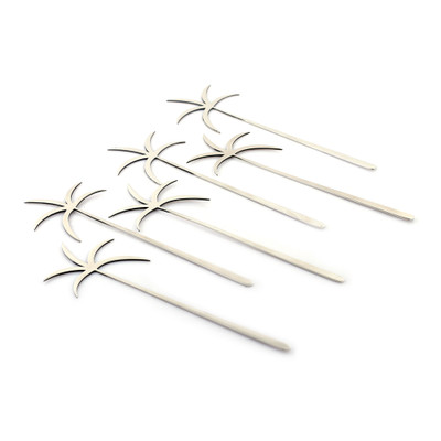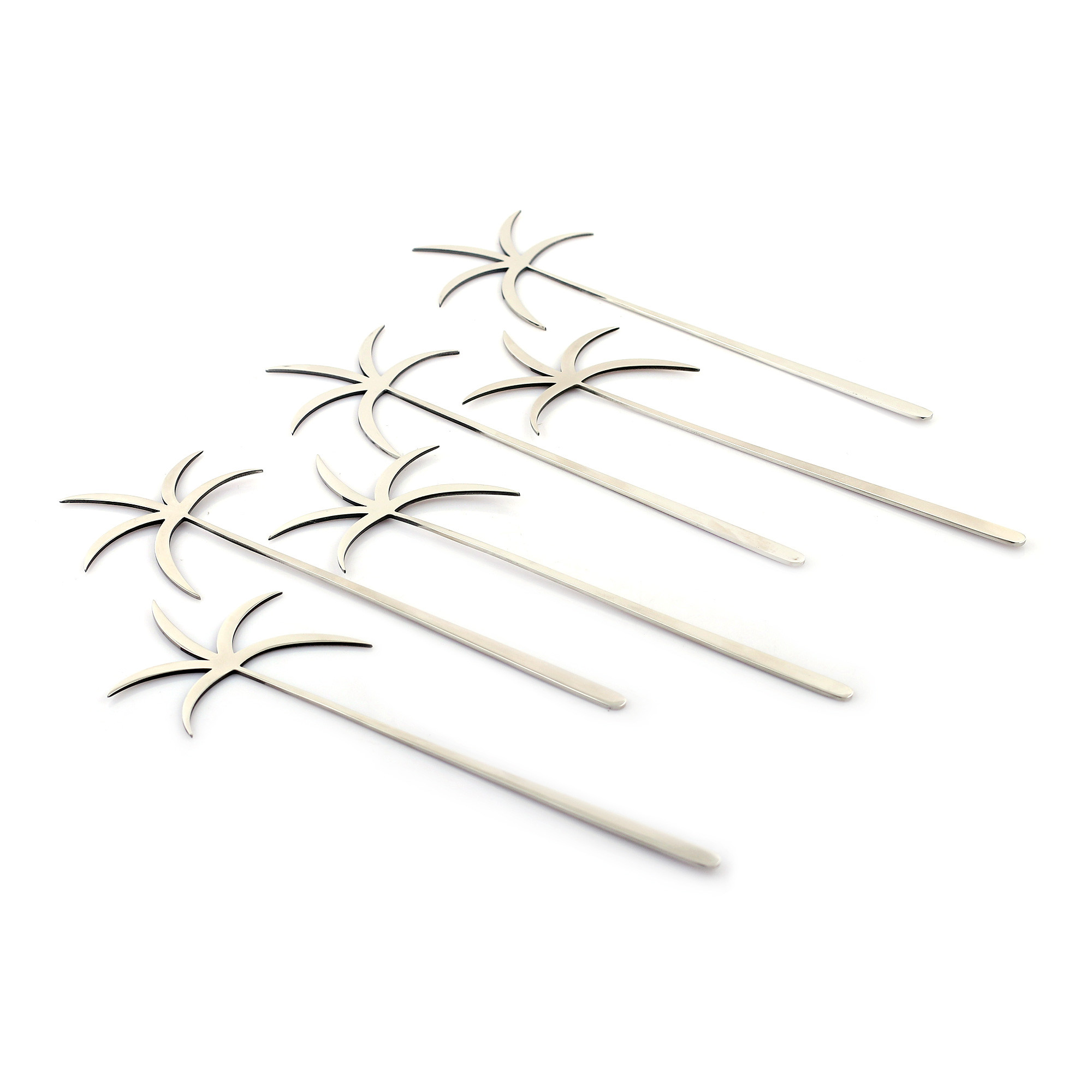 6 Modern Stainless Steel Drink Stirrers with Palm Tree Motif, 'Tropical Palm Trees'