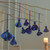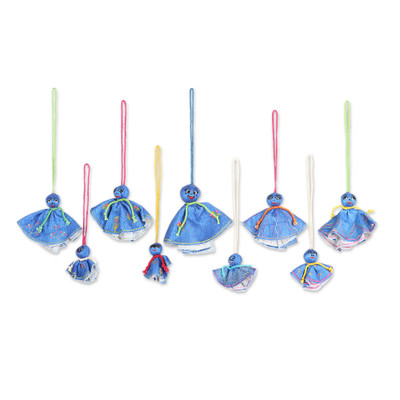 9 Hand-Embroidered Viscose Doll Halloween Ornaments in Blue, 'Blue Spooky Dolls'