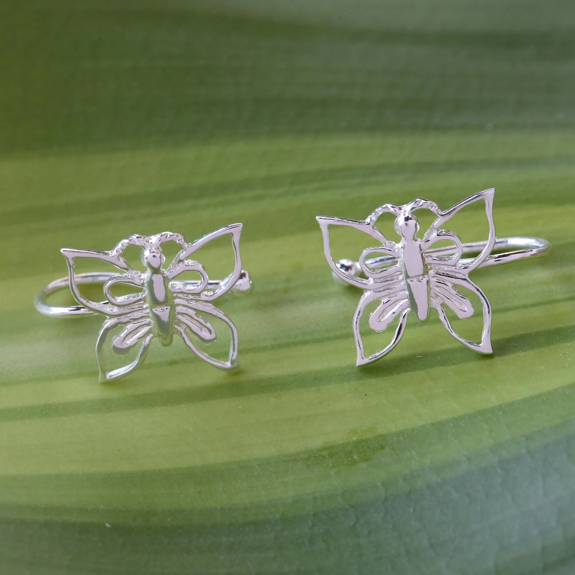 925 Silver Butterfly Ear Cuffs Artisan Crafted in Thailand, 'Demure Butterflies'
