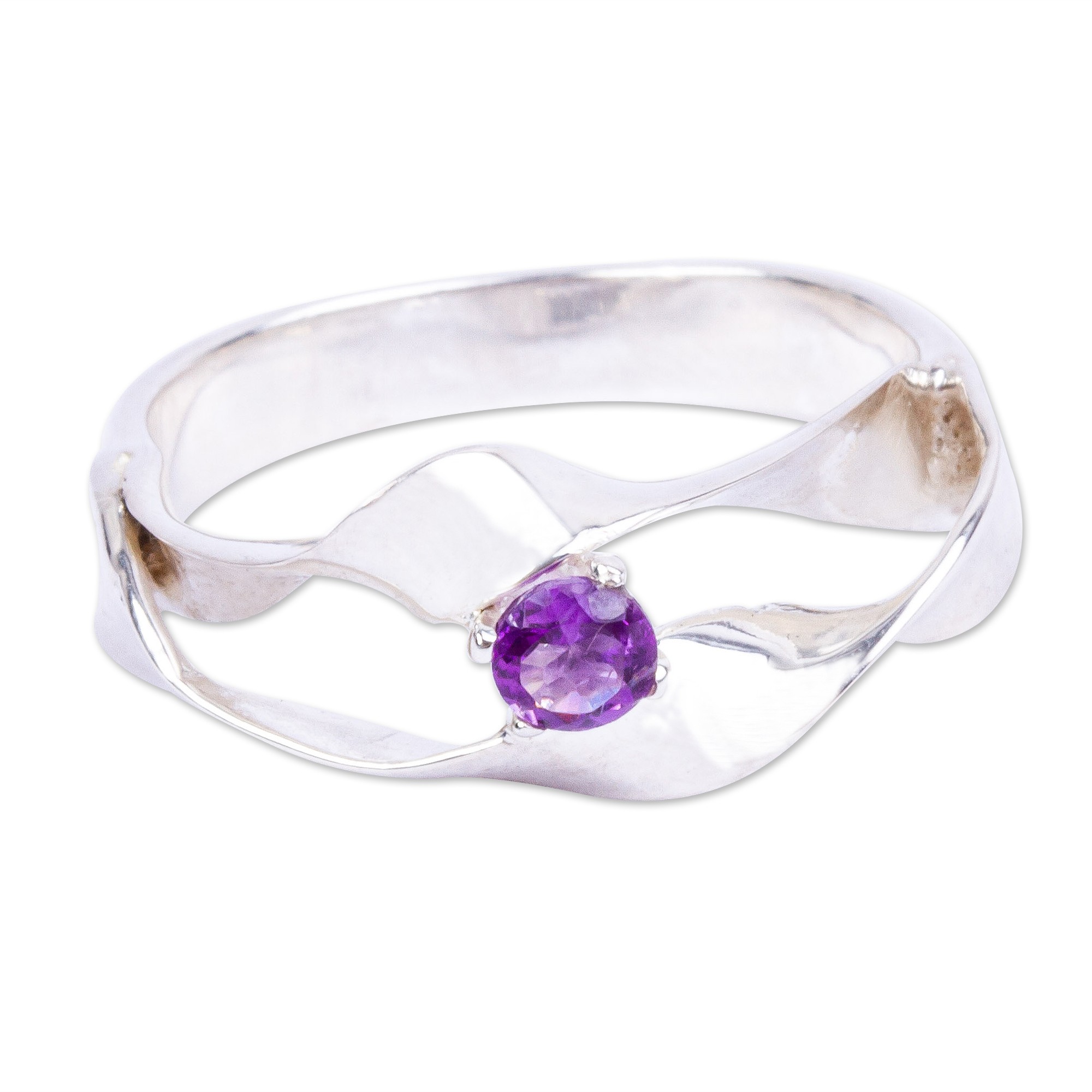 925 Sterling Silver and Amethyst Solitaire Ring from Mexico, 'Magic Waves'