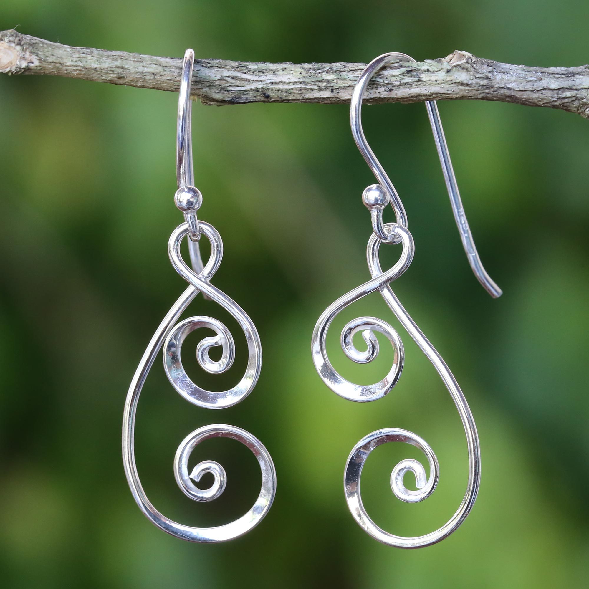925 Sterling Silver Artisan Crafted Thai Art Dangle Earrings, 'Lanna Spirals'