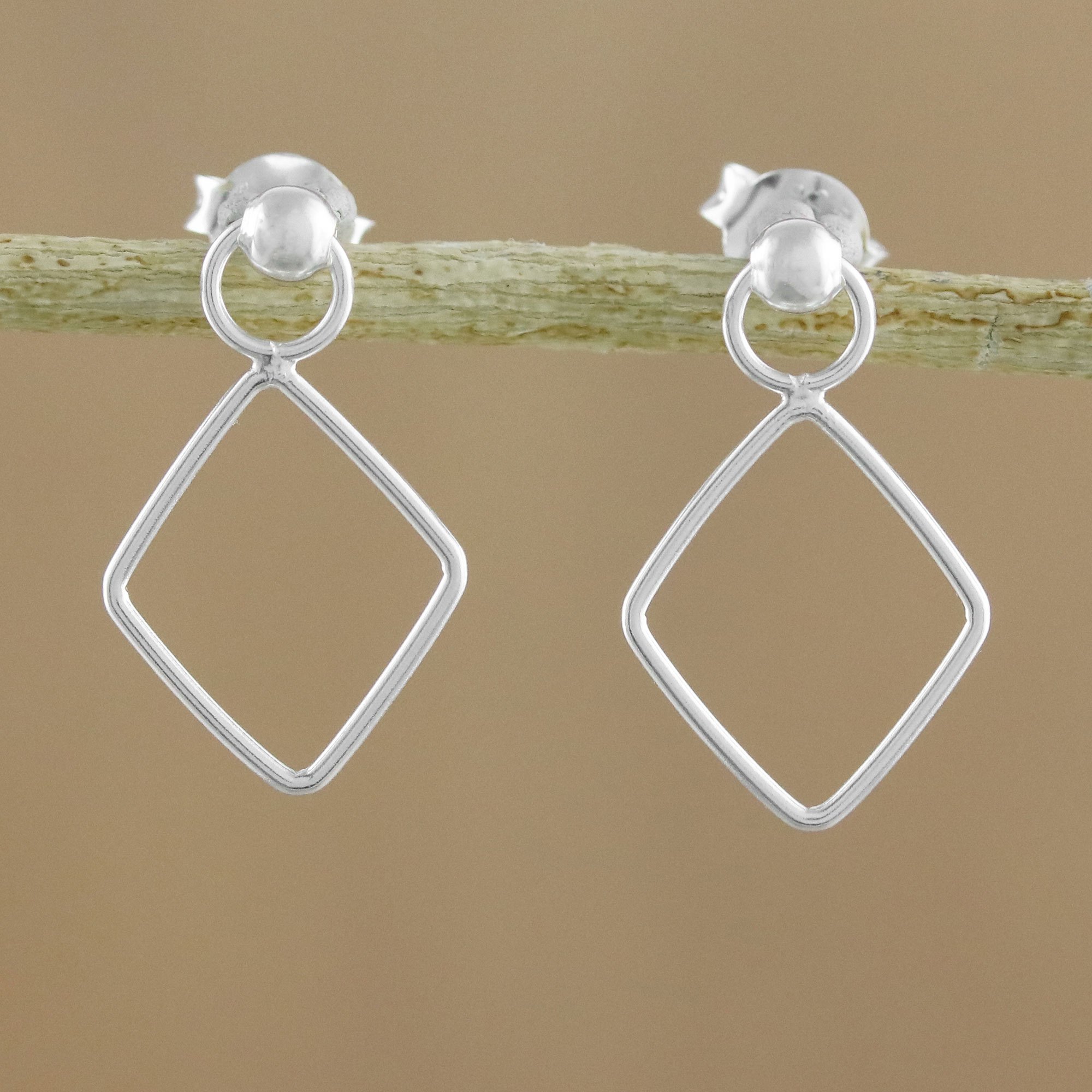 925 Sterling Silver Diamond Shaped Frame Earrings, 'Elegant Diamond'