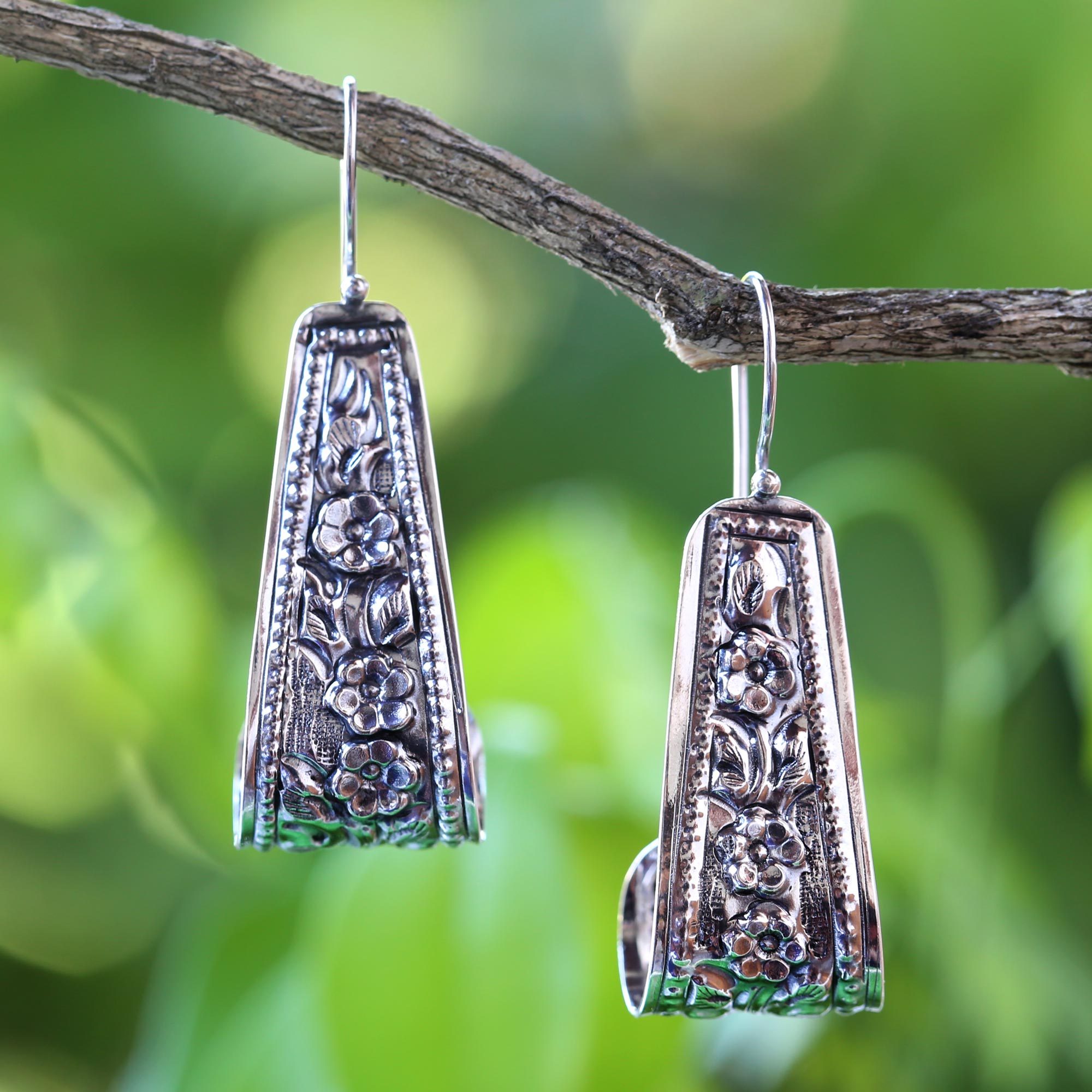 Inspired by the beauty of the jasmine flower, Thai artisan Lalana crafts this pair of drop earrings to feature beautiful floral motifs embossed in sterling silver. Inviting you on a peaceful journey, these earrings are sure to be noticed wherever they go.