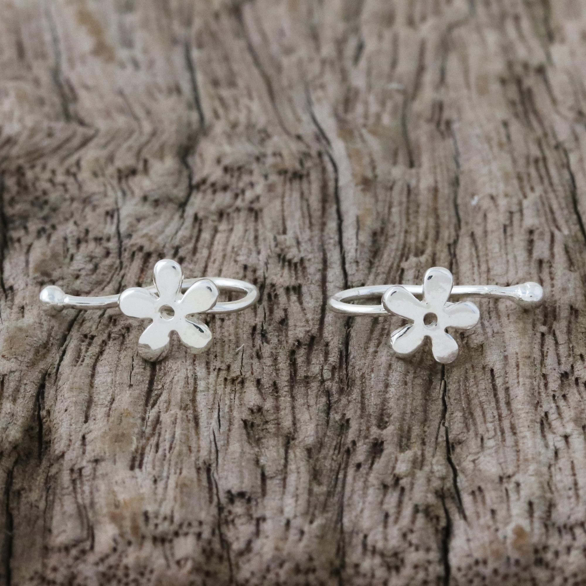 The beautiful, round petals of petite daisy flowers are captured in sterling silver to hug the ears. Thailand's Lalana designs this elegant pair of ear cuffs, working with her family members to craft them. She gives each ear cuff a high-polish finish for a truly eye-catching look.