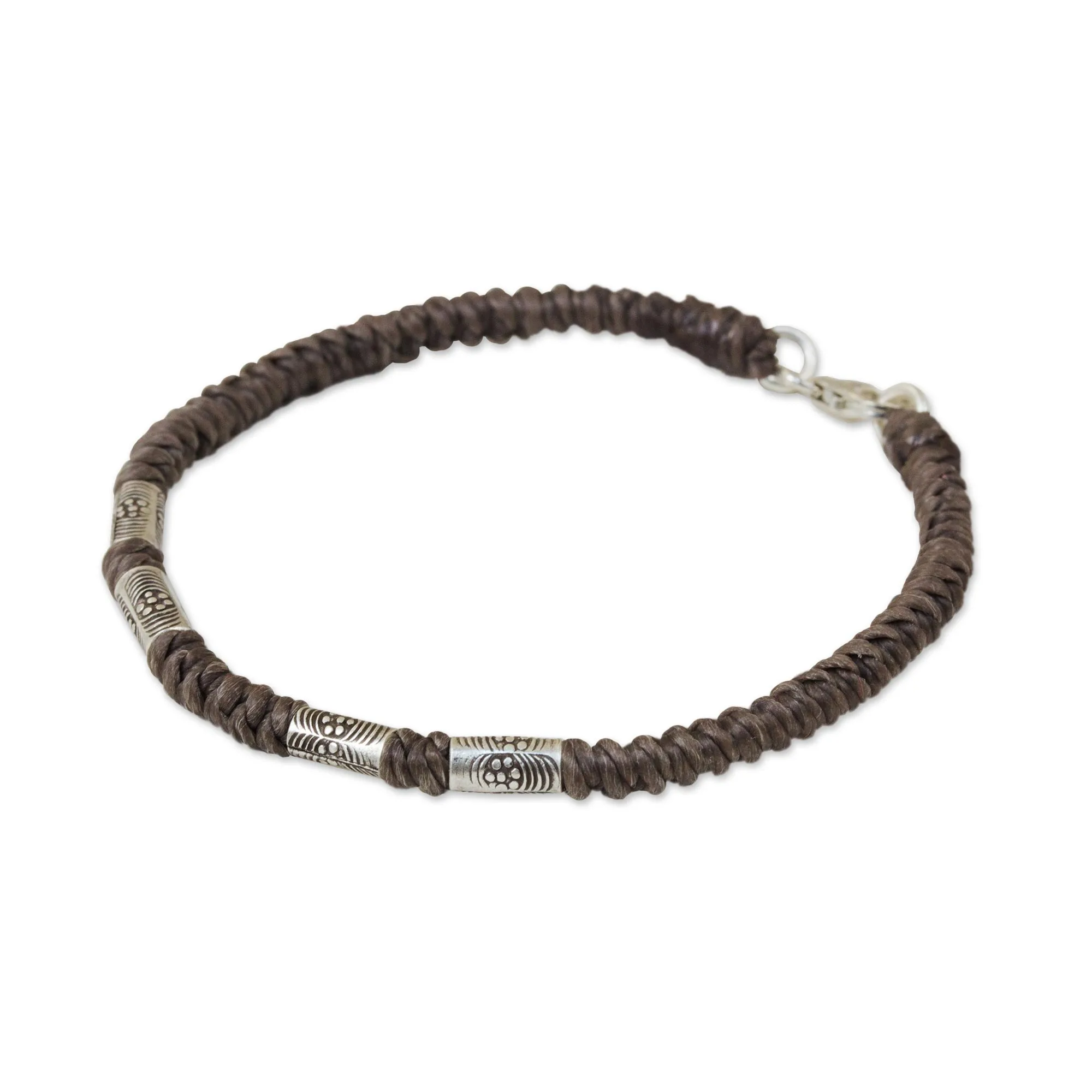 Thai artisan Napapat designs this braided bracelet with techniques that the Yao women normally only teach their daughters. She decorates it with silver beads featuring an oxidized finish done by Karen hill tribe silversmiths. This bracelet comes with a sterling silver lobster claw clasp.