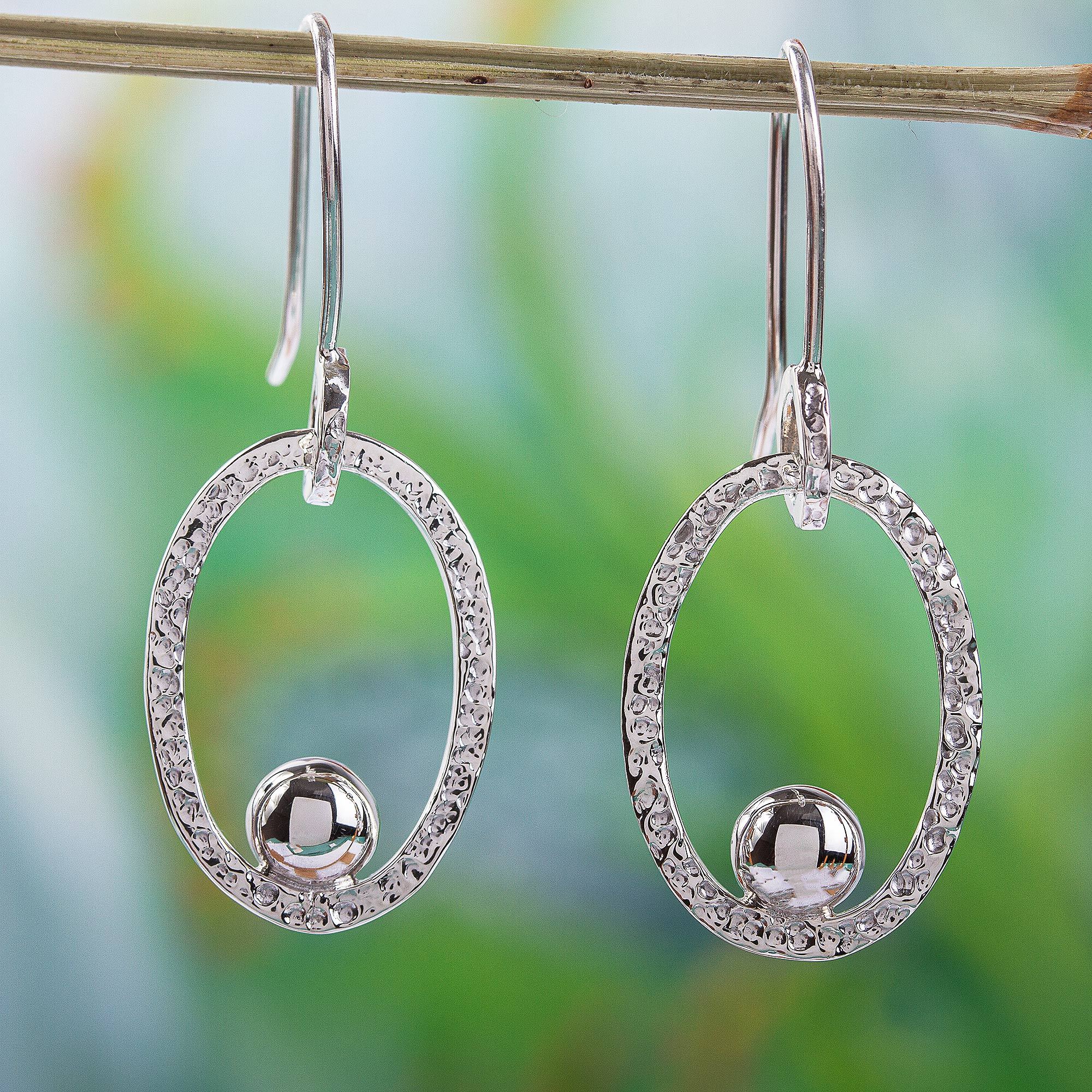 These pretty and versatile earrings are the creation of Alon Diller in Mexico. The dangle earrings are made of Taxco 950 silver with an attractive combination of textured and smooth finishes.