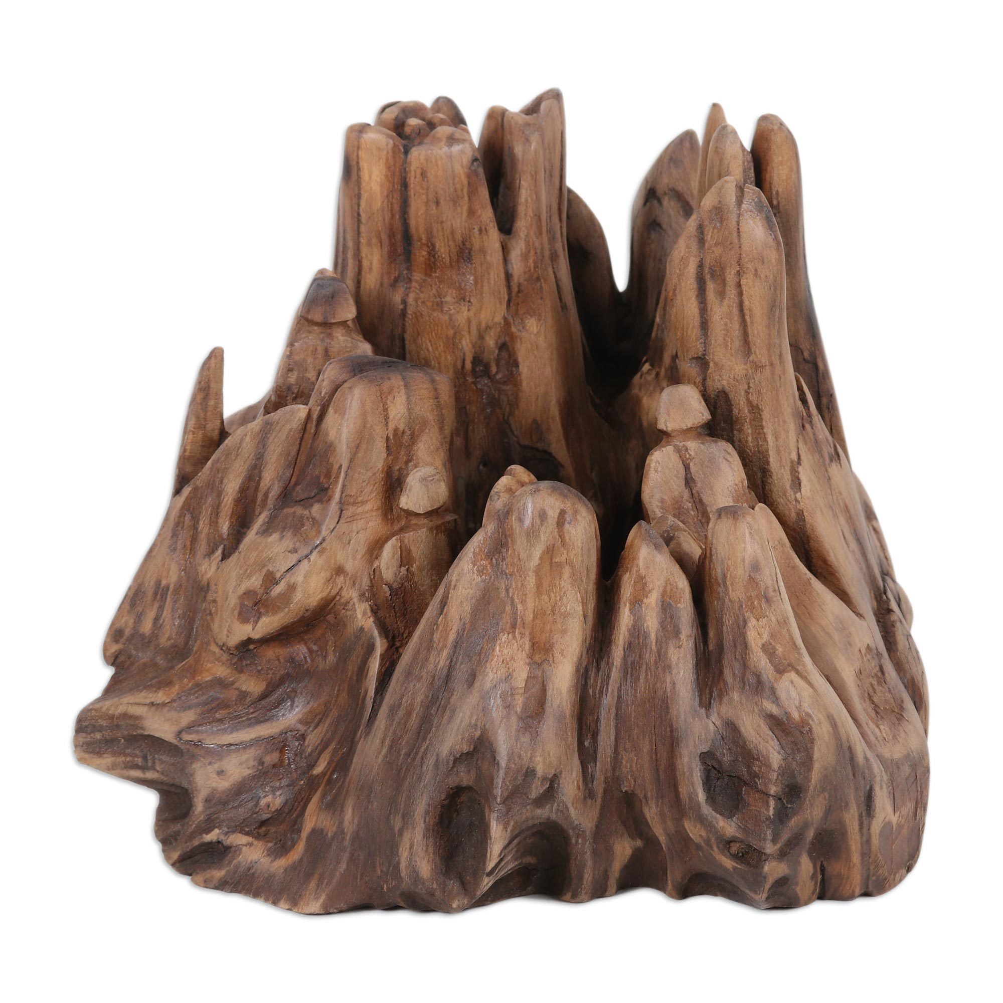 Abstract Sculpture Crafted in India From Reclaimed Teak Wood, 'Strong Nature'