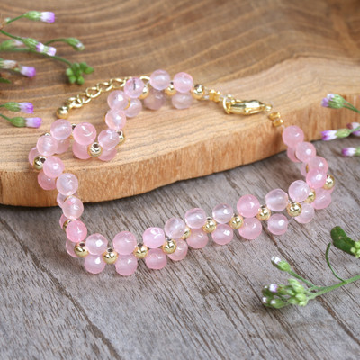 Adjustable 18k Gold-Accented Rose Quartz Beaded Bracelet, 'Loving Splendor'