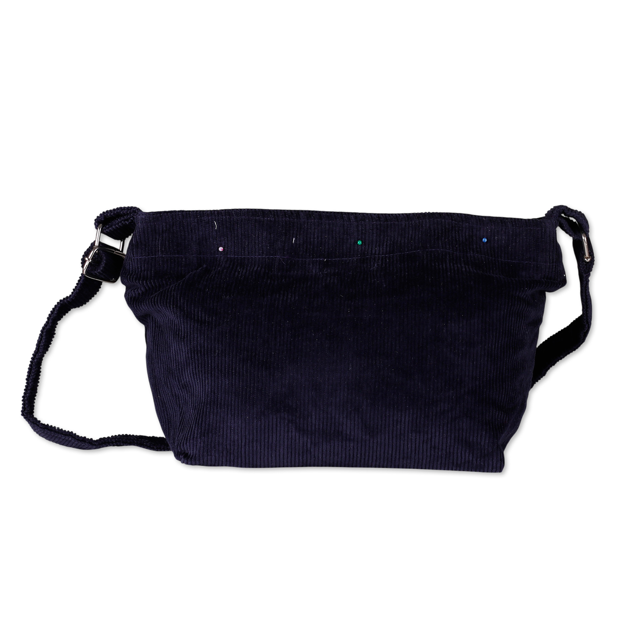 Adjustable Cotton Corduroy Shoulder Bag in Blue Shade, 'Midnight Elegance'