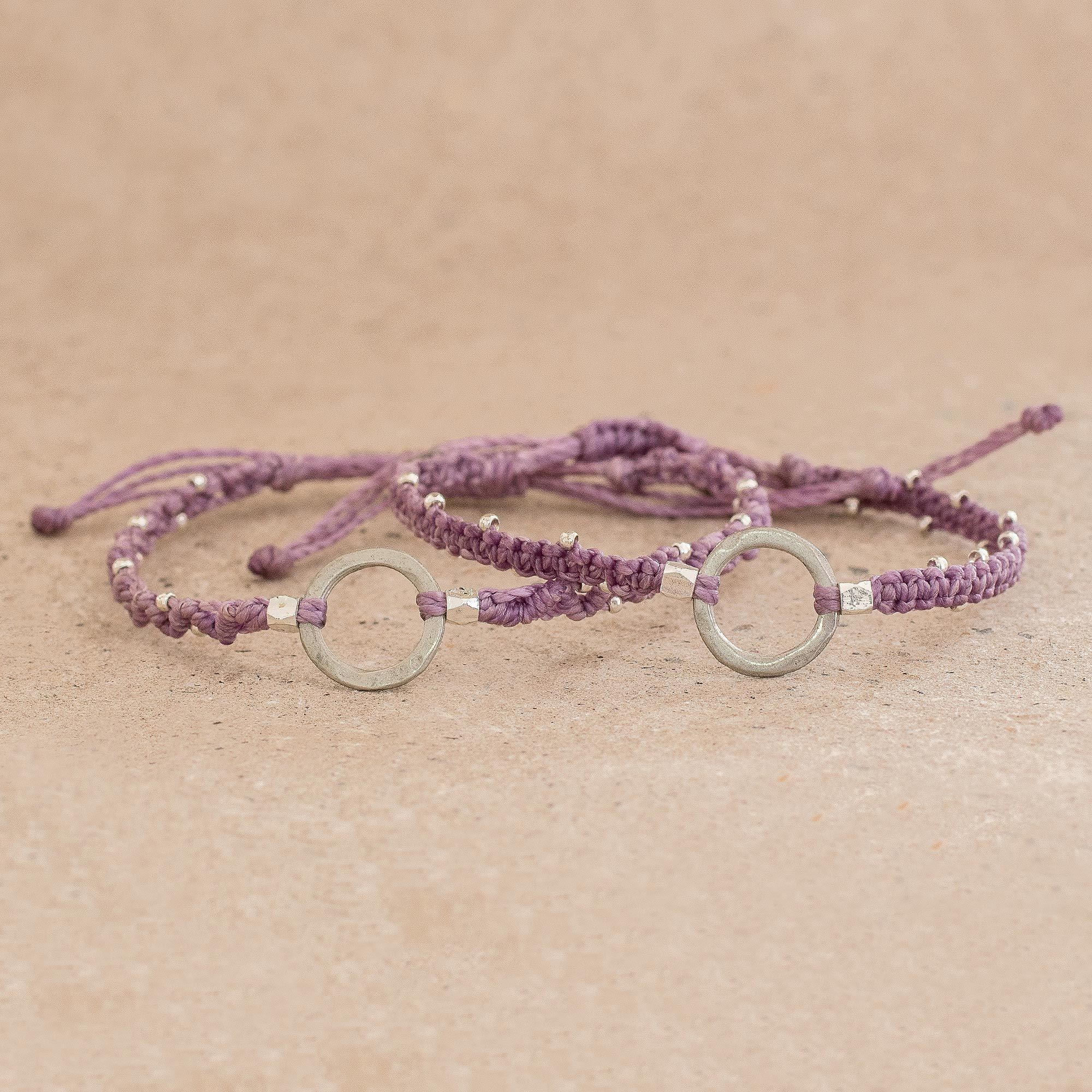 Adjustable Lavender Macrame Bracelets (Pair), 'Circle Center'