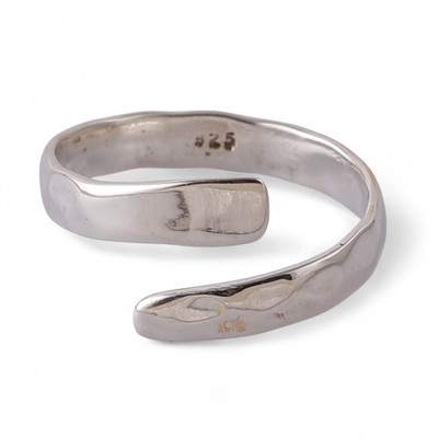 Adjustable Minimalist Silver Wrap Ring with Hammered Finish, 'Rippled Reflection'