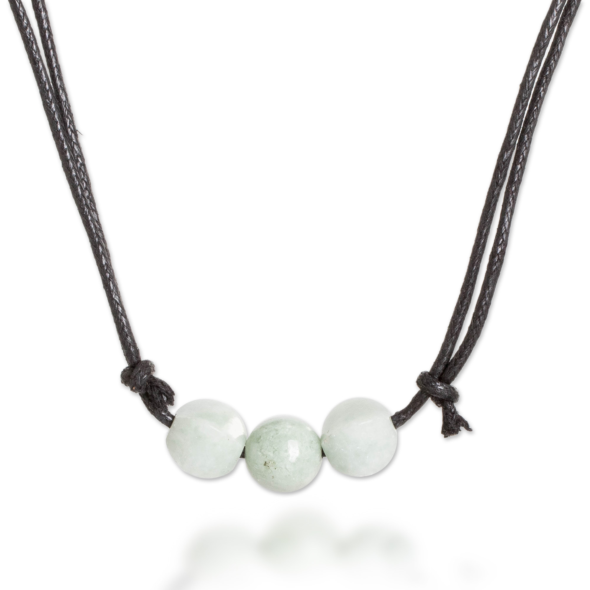 Adjustable Pendant Necklace with 3 Apple Green Jade Beads, 'Sweetest Trio'