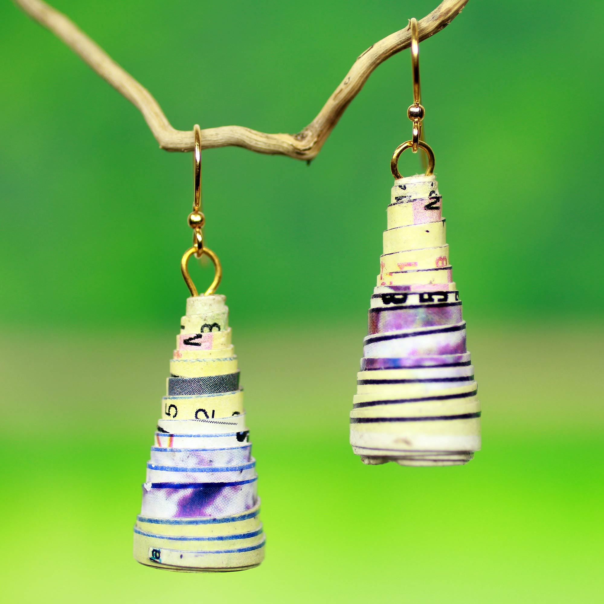 Afro Ecology Recycled Earrings, 'Ring My Bell'