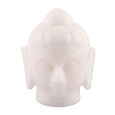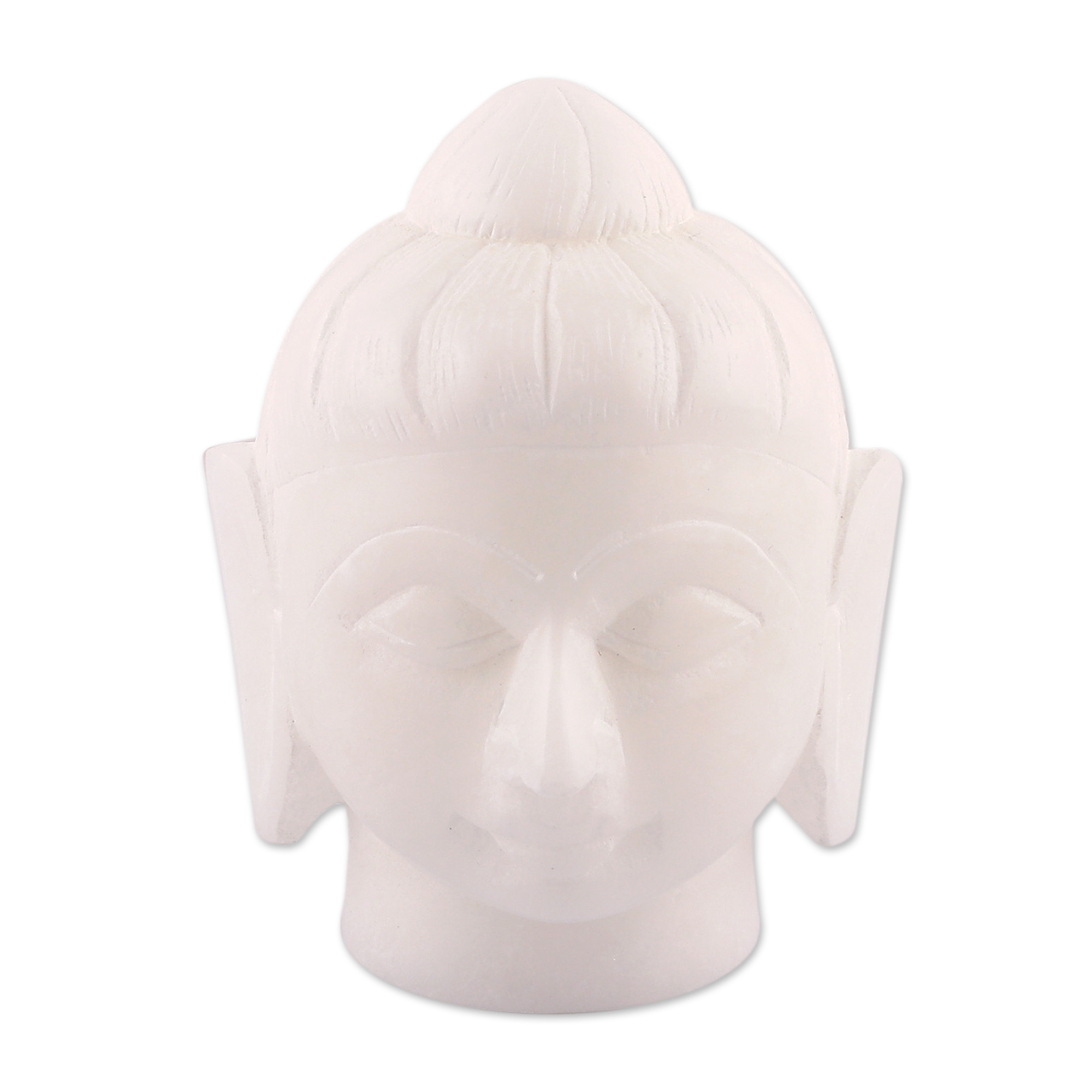 Alabaster Buddha Head Sculpture Hand-Carved in India, 'Quiet Buddha'