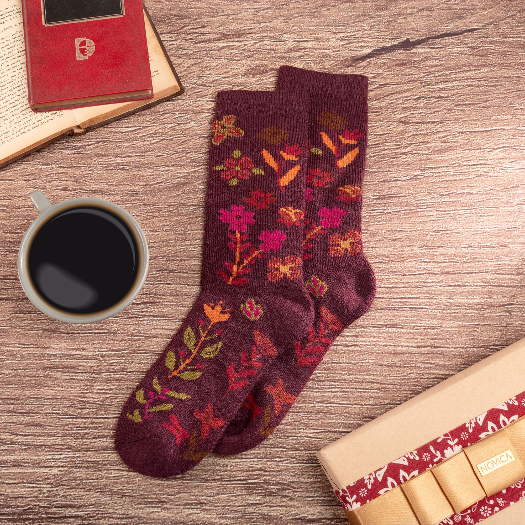 Alpaca Blend Floral Socks from Peru, 'Cozy Chic'