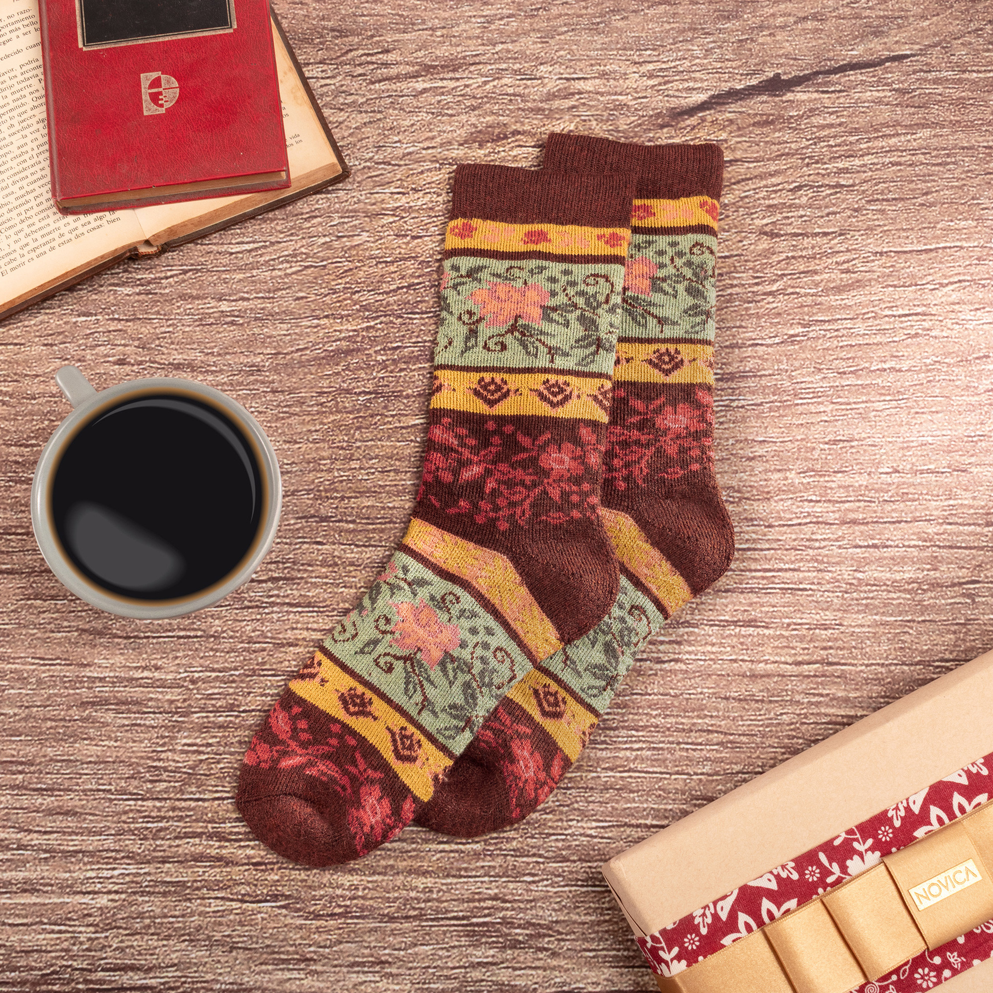 Crafted from a luxurious alpaca acrylic blend, these socks are the epitome of cozy chic. The soft, breathable knit keeps you warm and comfortable all day long. Whether you're treating yourself or looking for the perfect gift, these beautiful and practical socks are sure to delight.