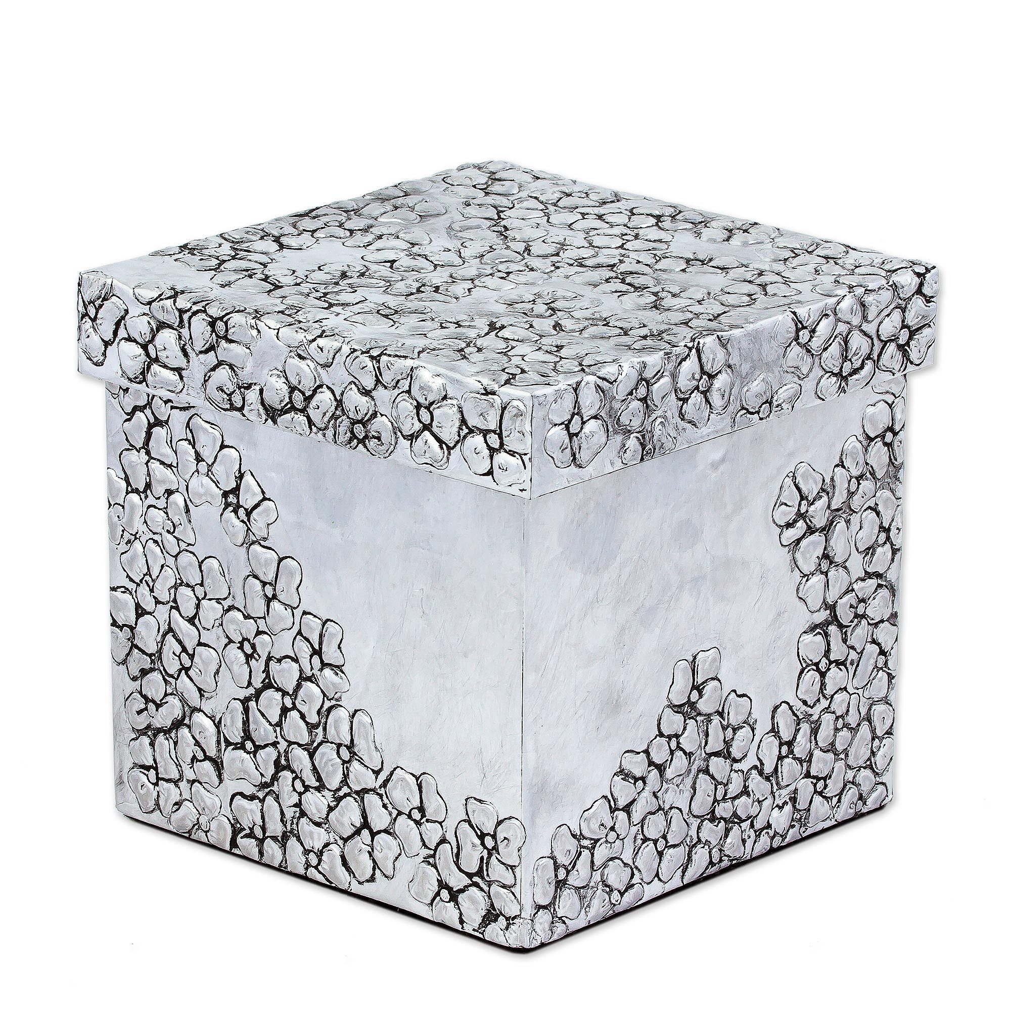 Aluminum Repousse Floral Decorative Box from Mexico, 'Blossom Cascade'